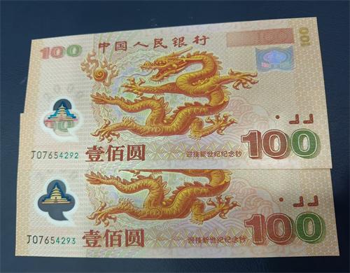 世纪龙钞连号2张全品 其中一张乱蛇号码,无折无氧化,通走2128元包邮