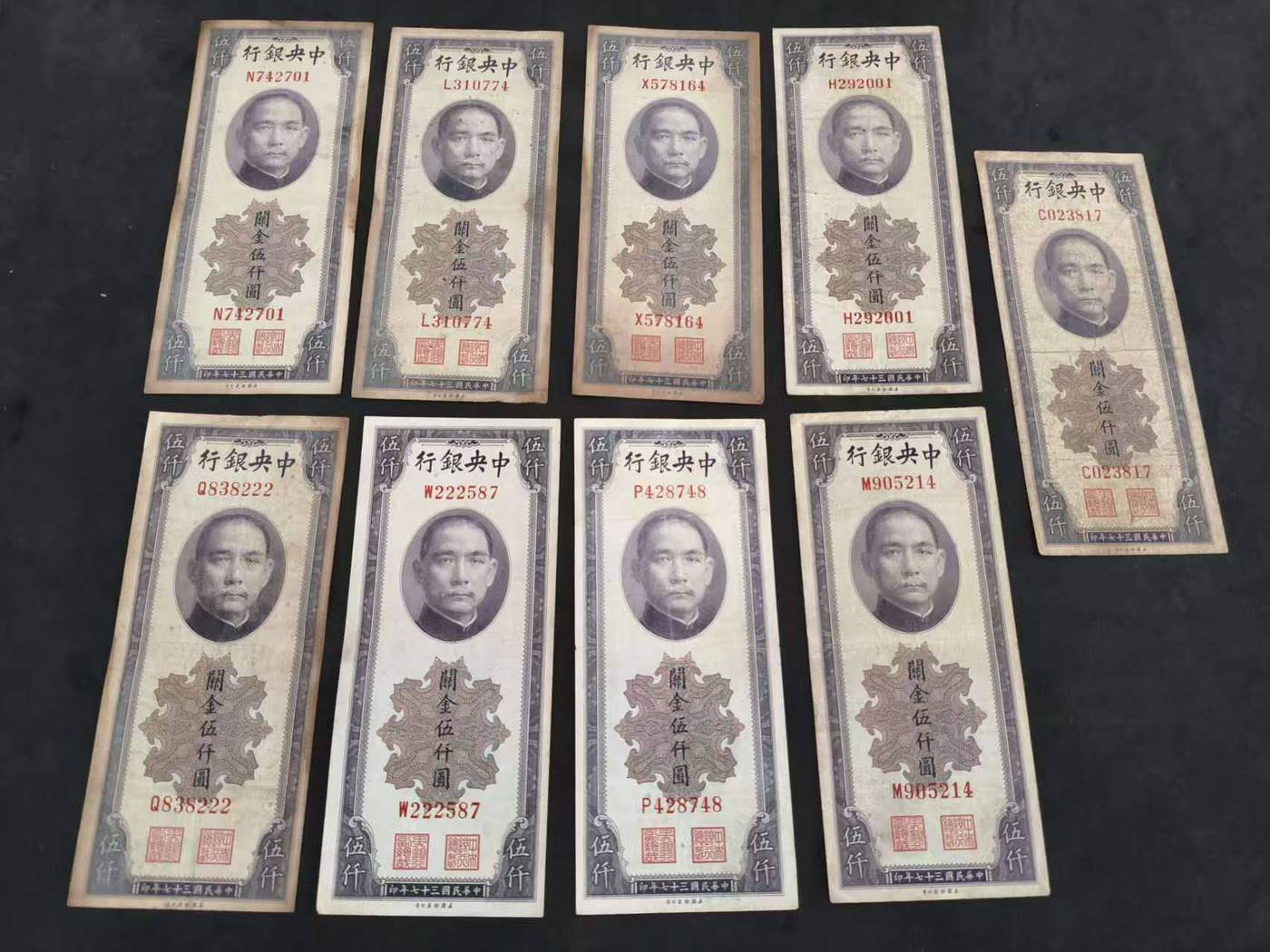 7张关金500面值,售出