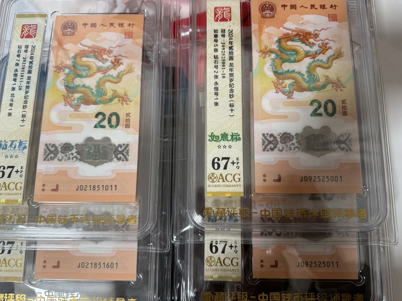 便宜出4组龙钞无347标十,爱藏67+,三星,如意标十