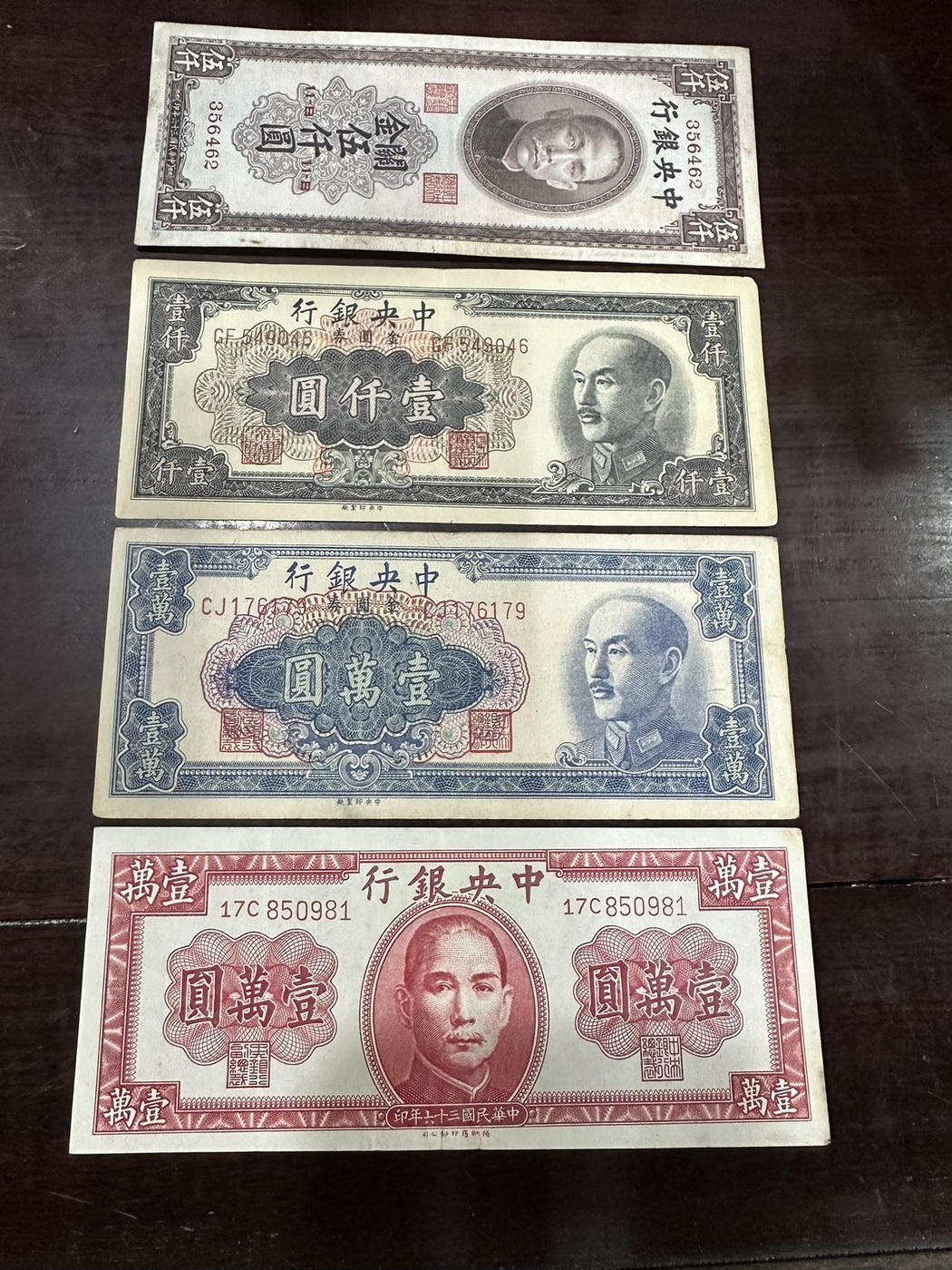 → 便宜岀民国币500,1000,50,10000,5000,的