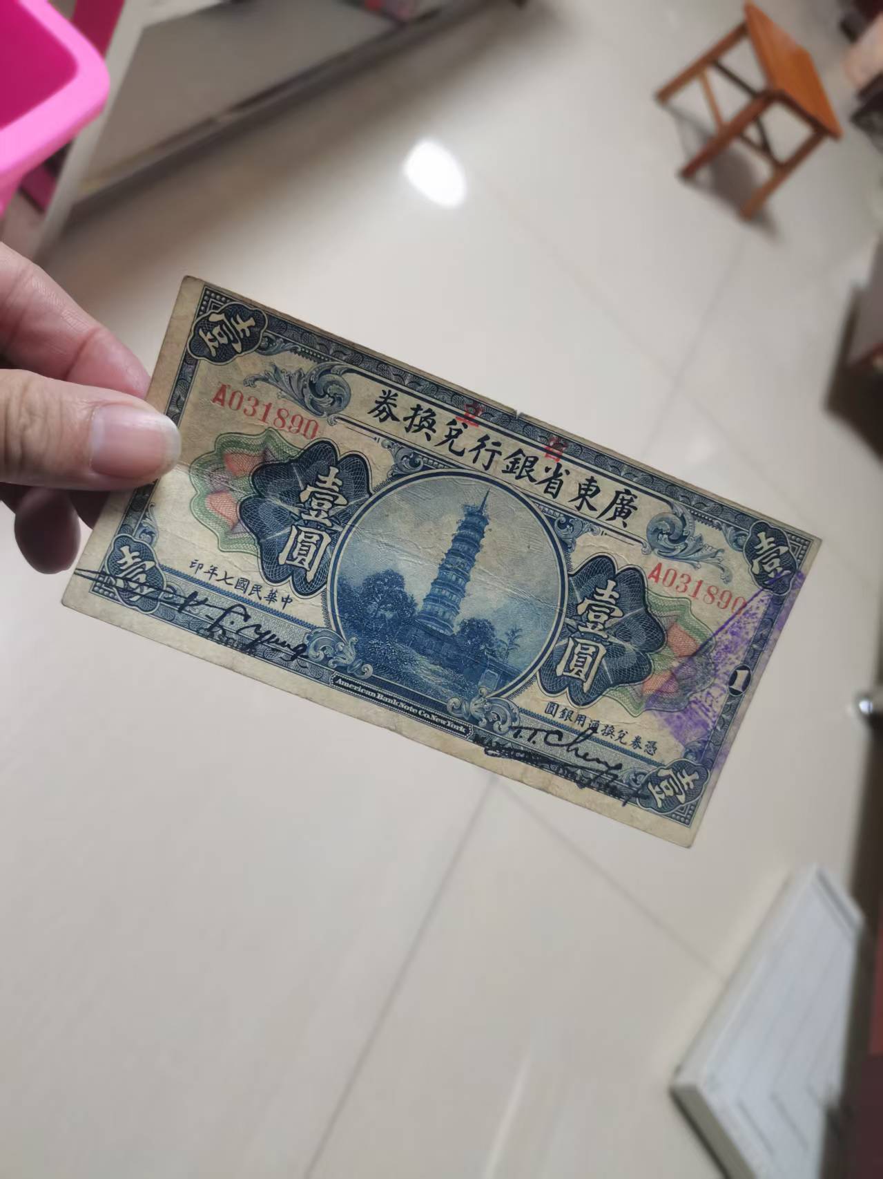 → 广东省银行兑换券壹圆双签名一张