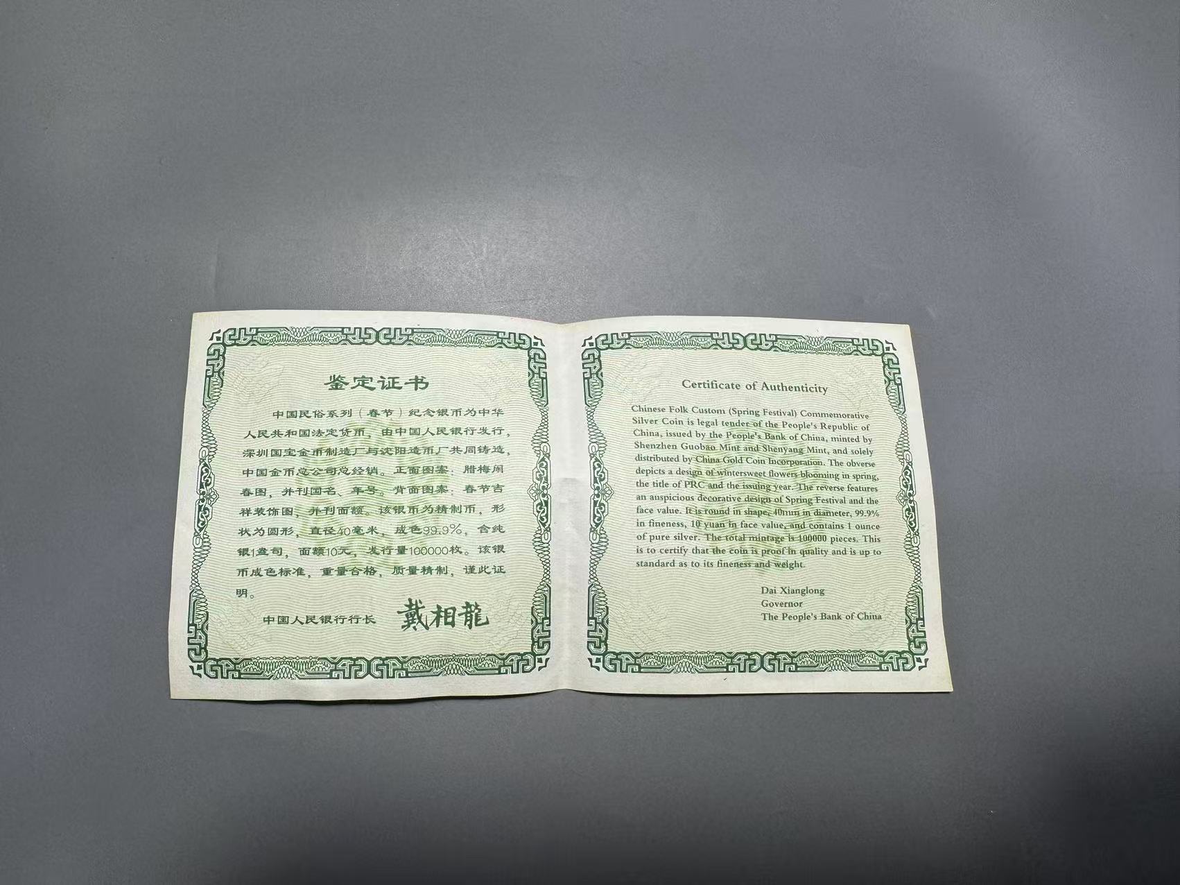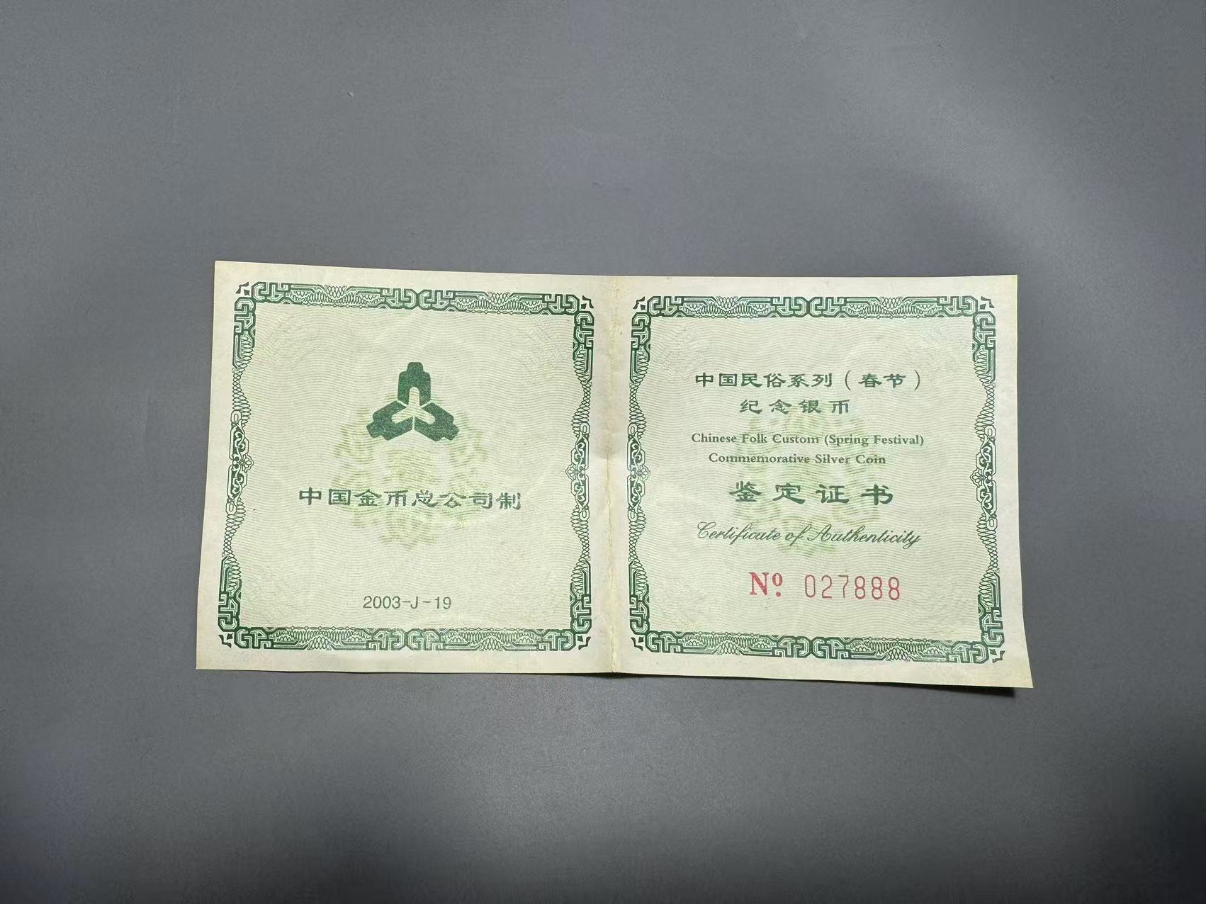 → 春节银币,盒子证书齐全,证书号码888