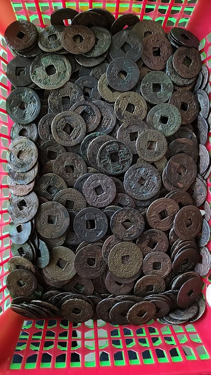 亏钱处理田坑清散铜钱7百枚,里面绝大部分都是乾隆,未挑过,25+以上也不少,田坑货字口差点,裂漏基本扔掉了,特价0.9元/枚通走了!