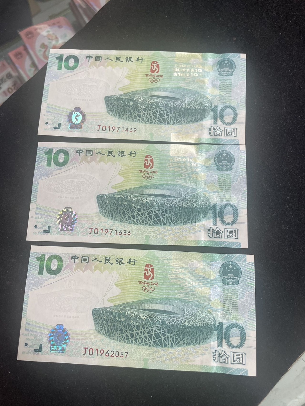 1900一张出售大陆奥运钞三连售价一张通走