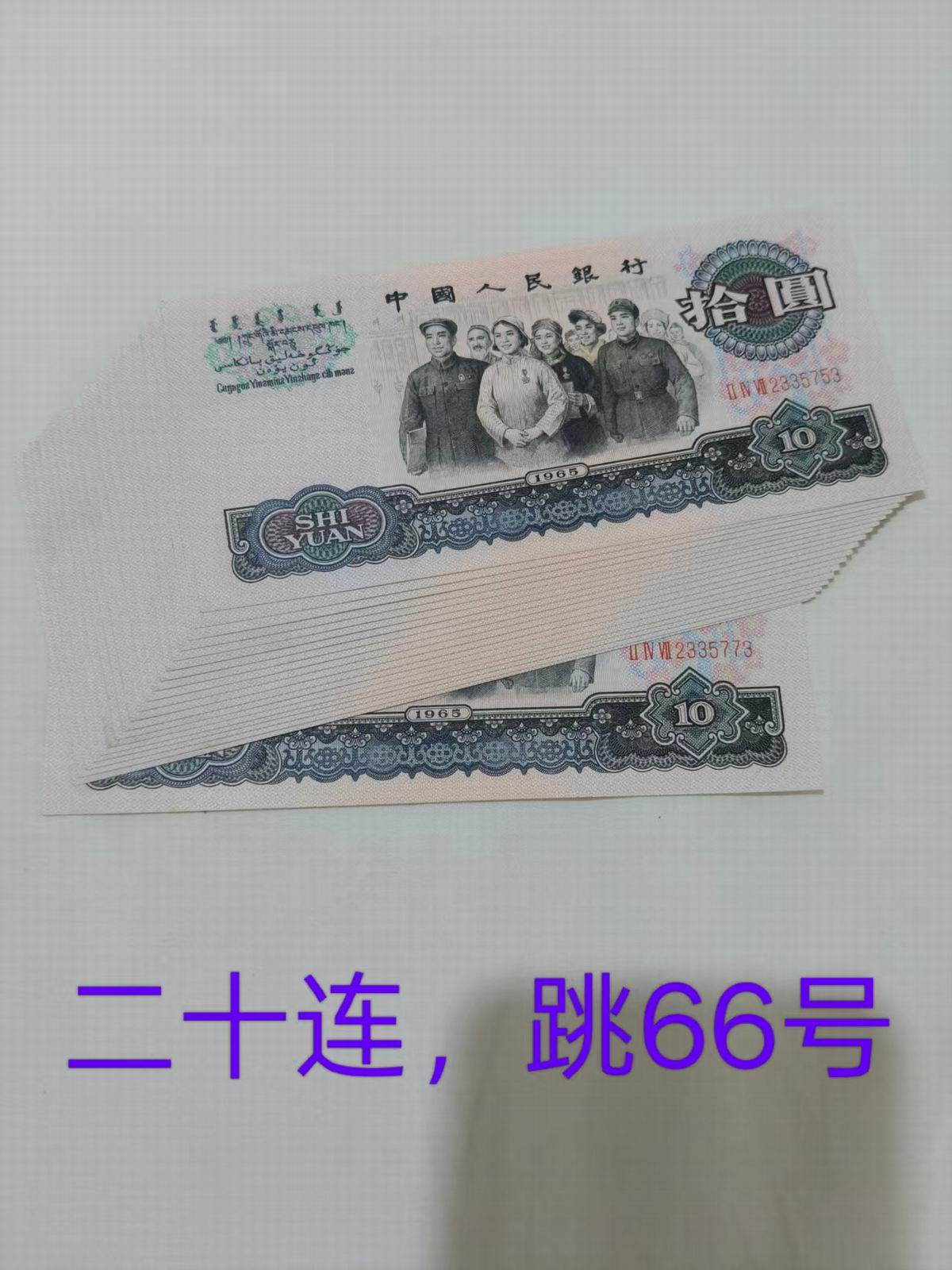 如图,全新原票大团结20张,通走120元/张