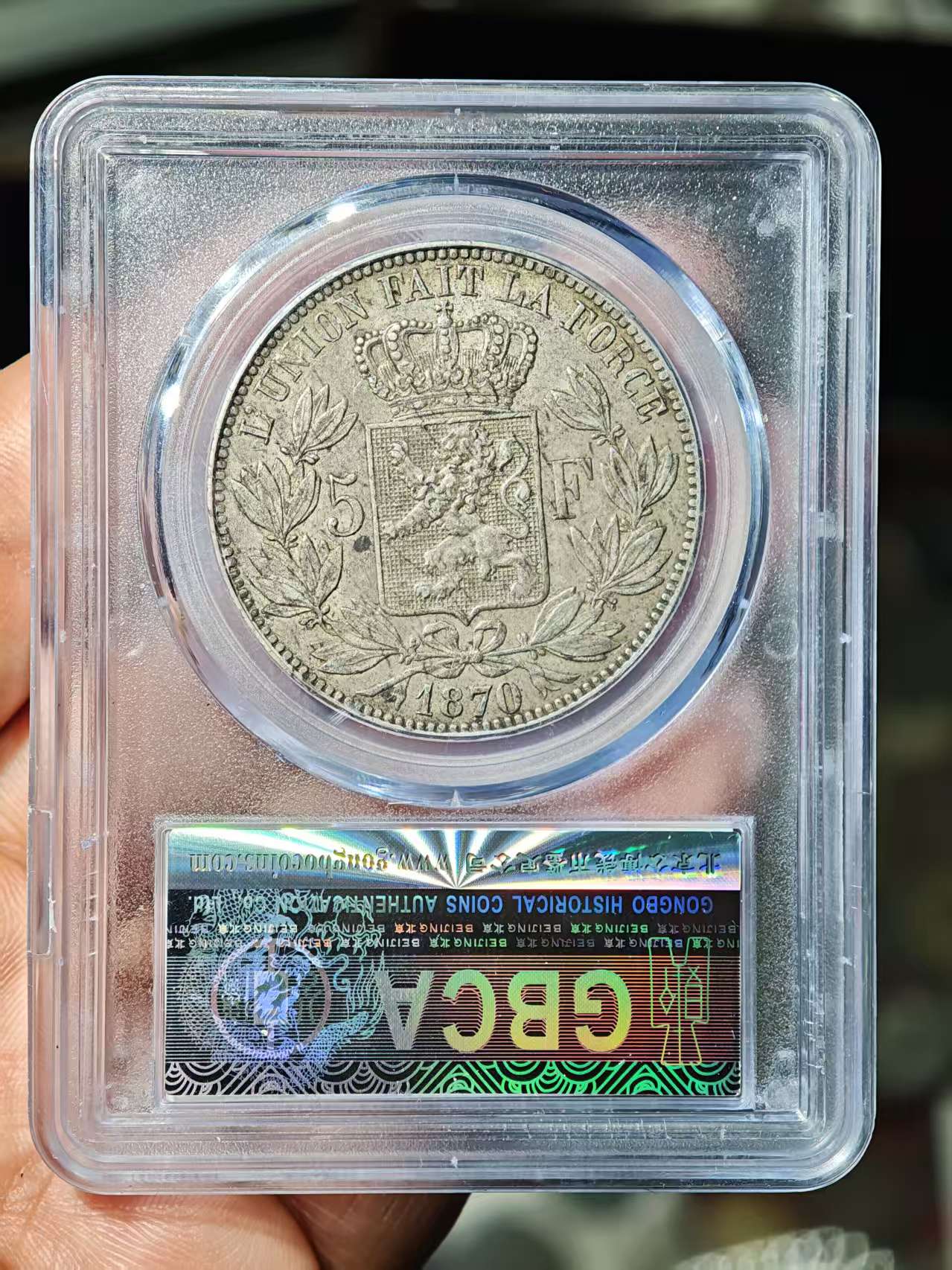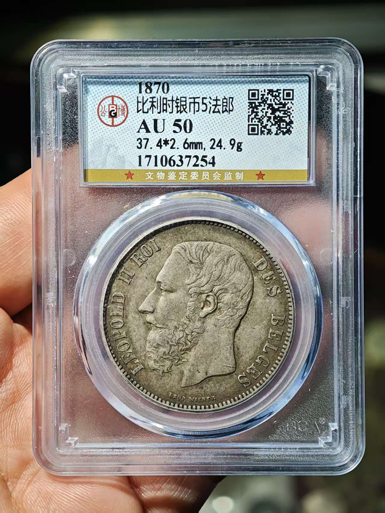 → 公博评级鉴定-AU50 比利时5法郎大银币