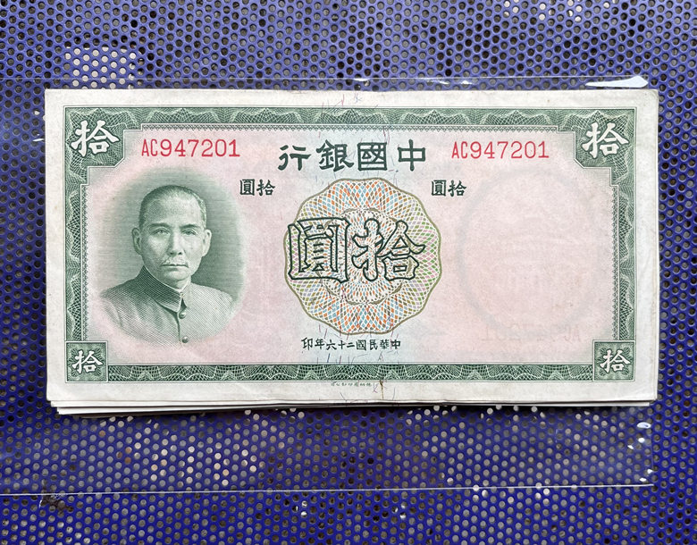 → 全新孙像中国银行拾圆 连号97张