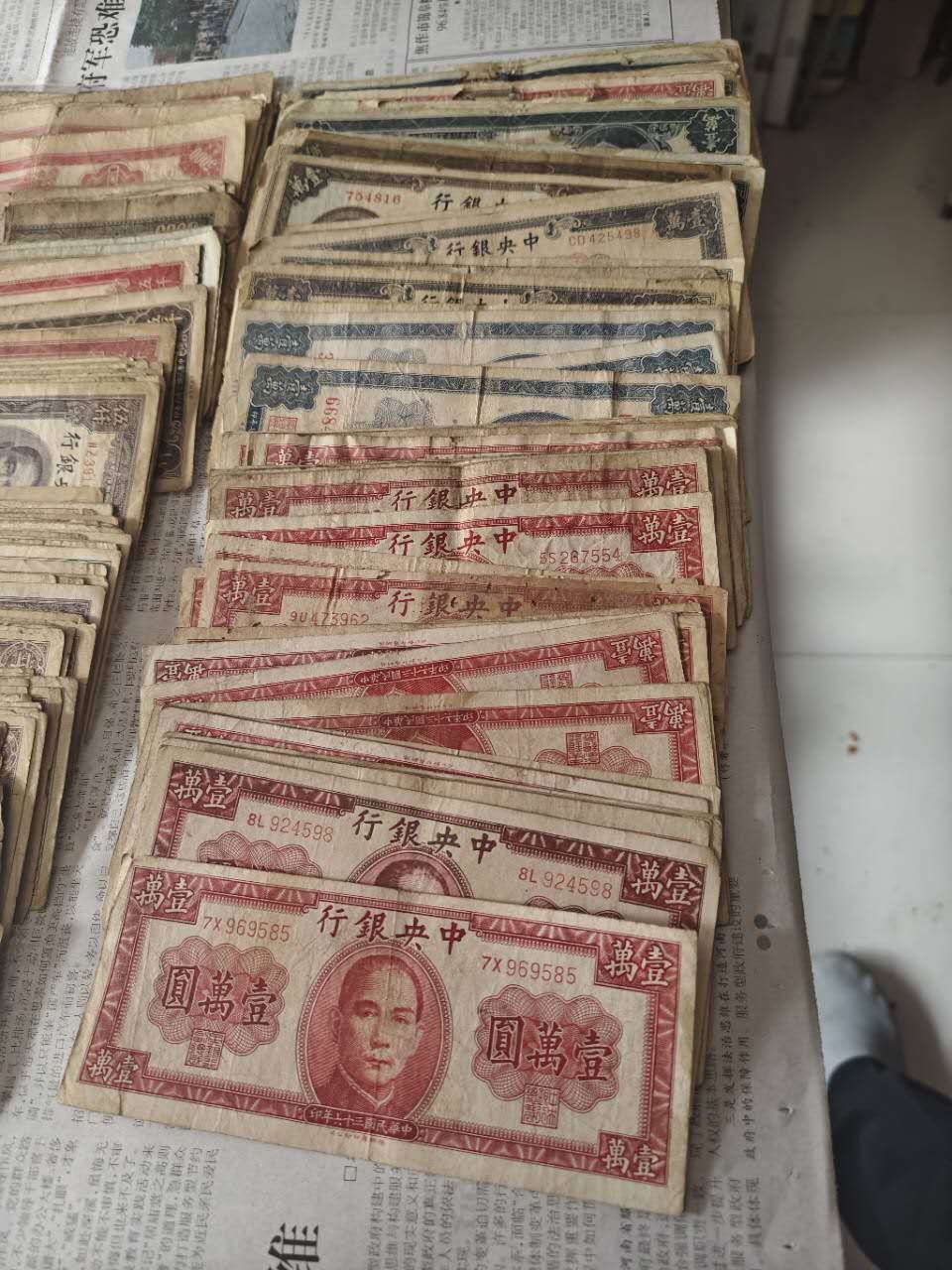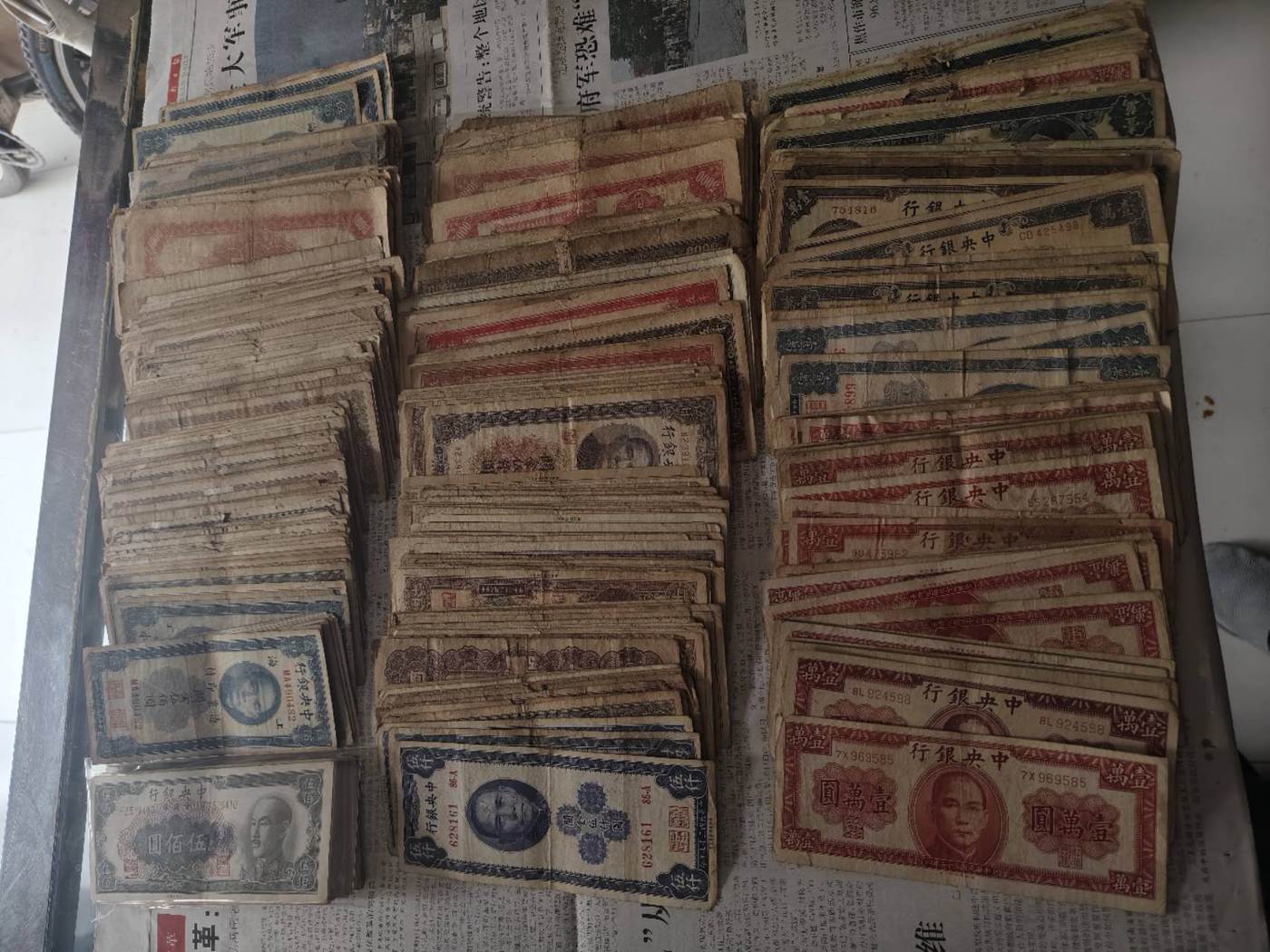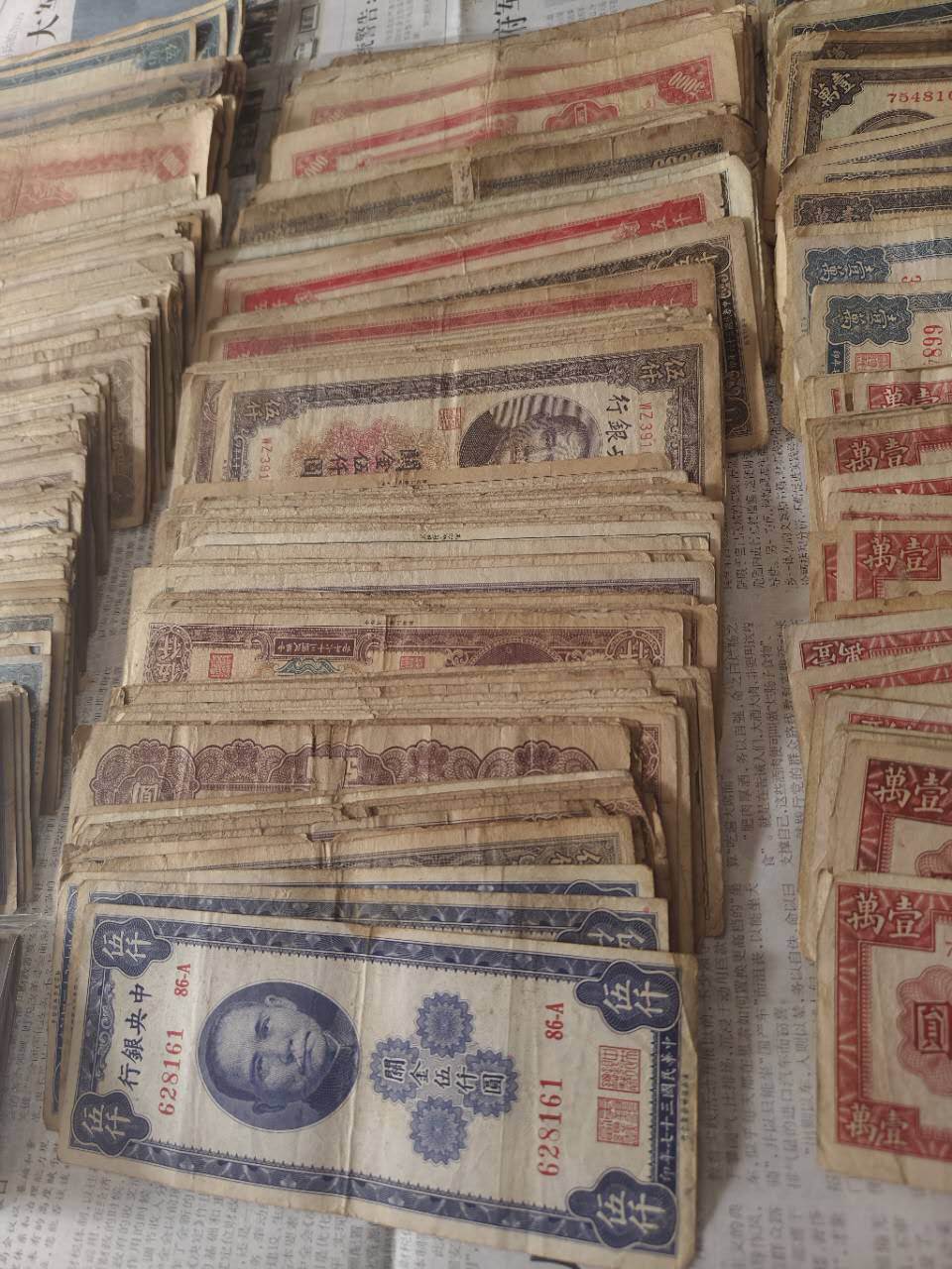 → 民国纸币500元至2500元共350张,5000元和一万元共300张