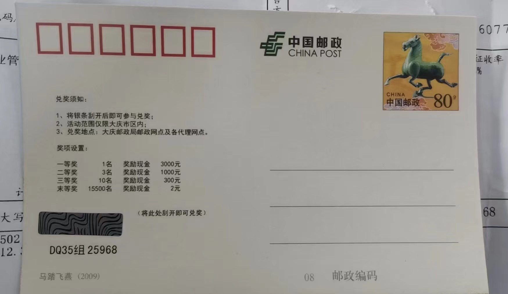 3000枚一箱,有两箱,打包成一起邮政普包发出。
