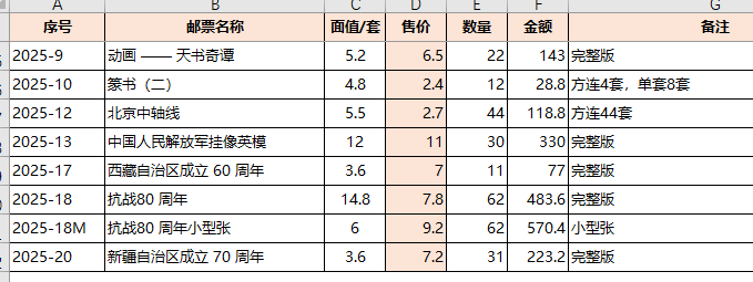 低售2025年部分套票 少量