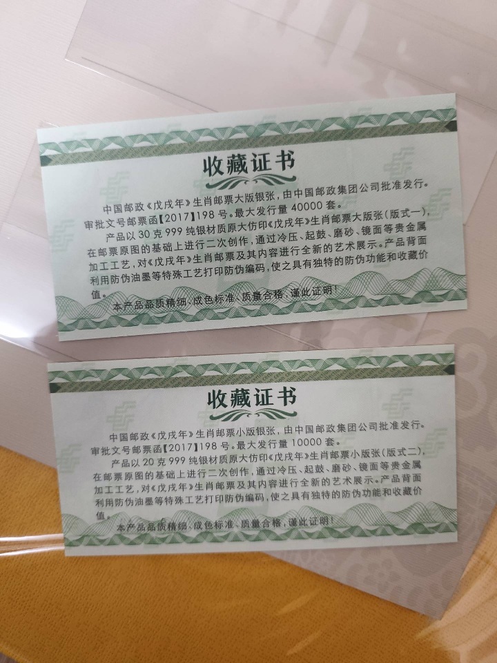 中国集邮总公司的金犬纳福册子出售,包括四轮狗大小版(银的)含证书和四轮狗大小版。品如图,850包邮,偏远地区不包,先款电联确认,以我确认为准!白银价格波动,本帖子只限本人跟帖当天有效!