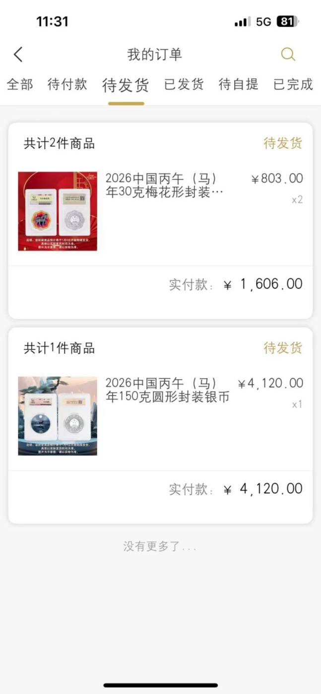 出2枚云商中签封装彩银马,闷包发