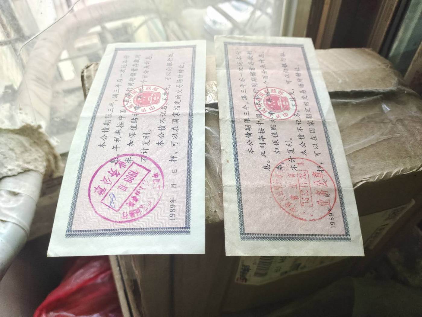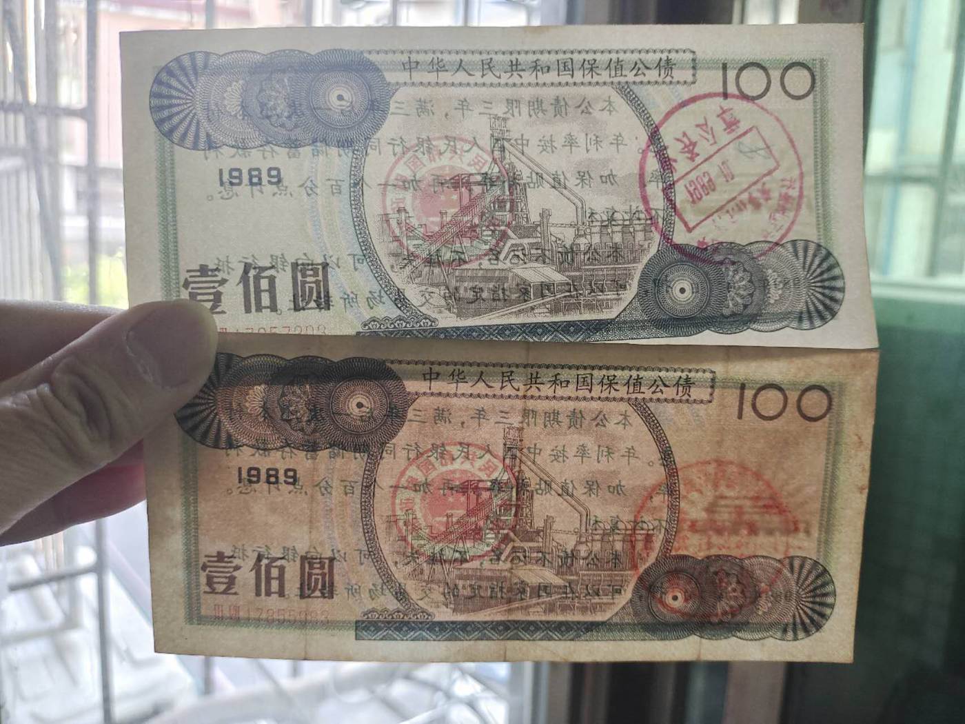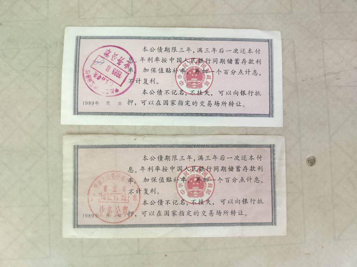 如图两张1989年100面值的保值公债,通走708元包邮。