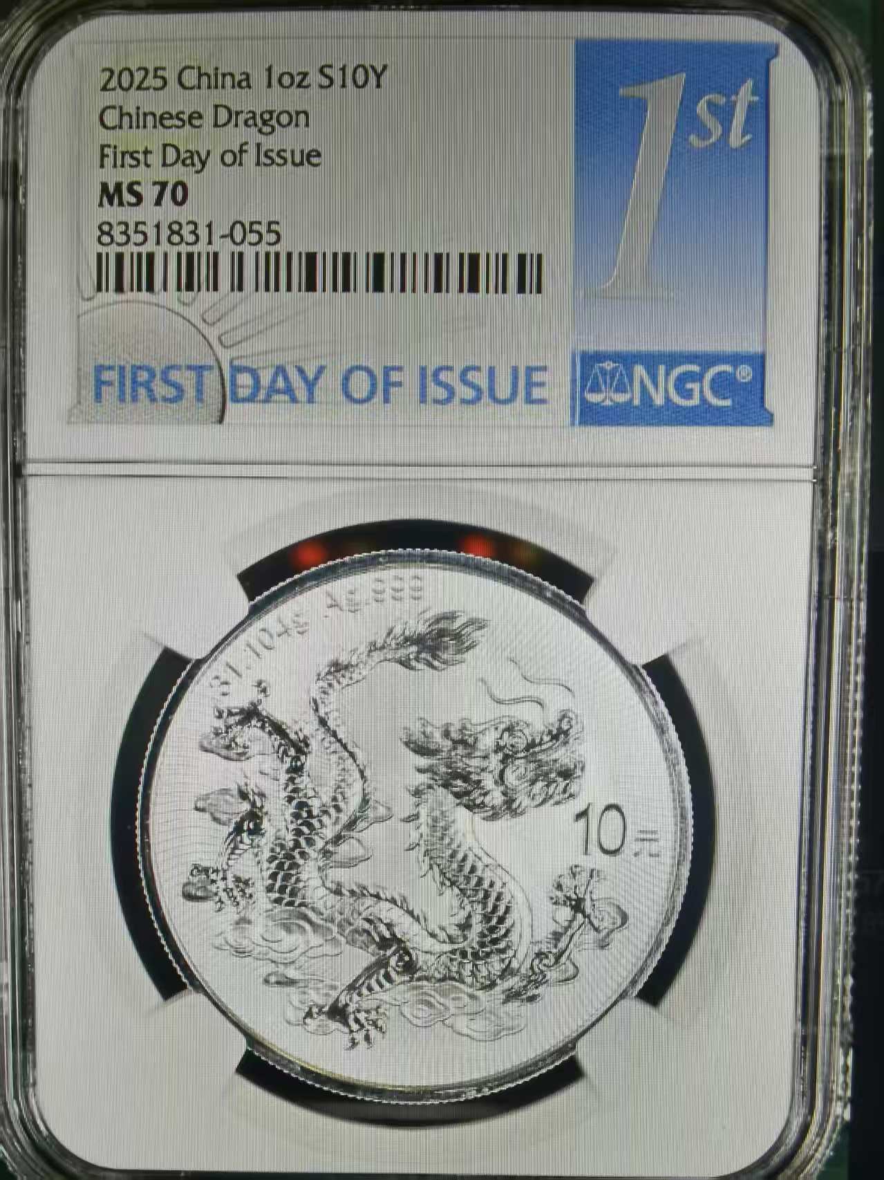特价出中国龙银币首日金兰标70分美国版一枚(总量366枚)
