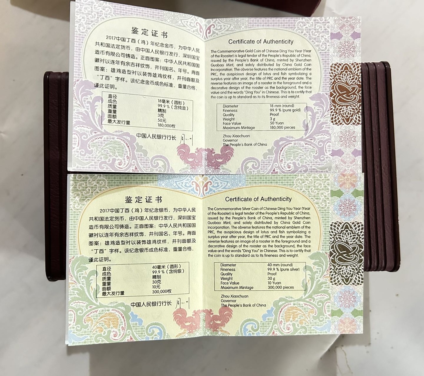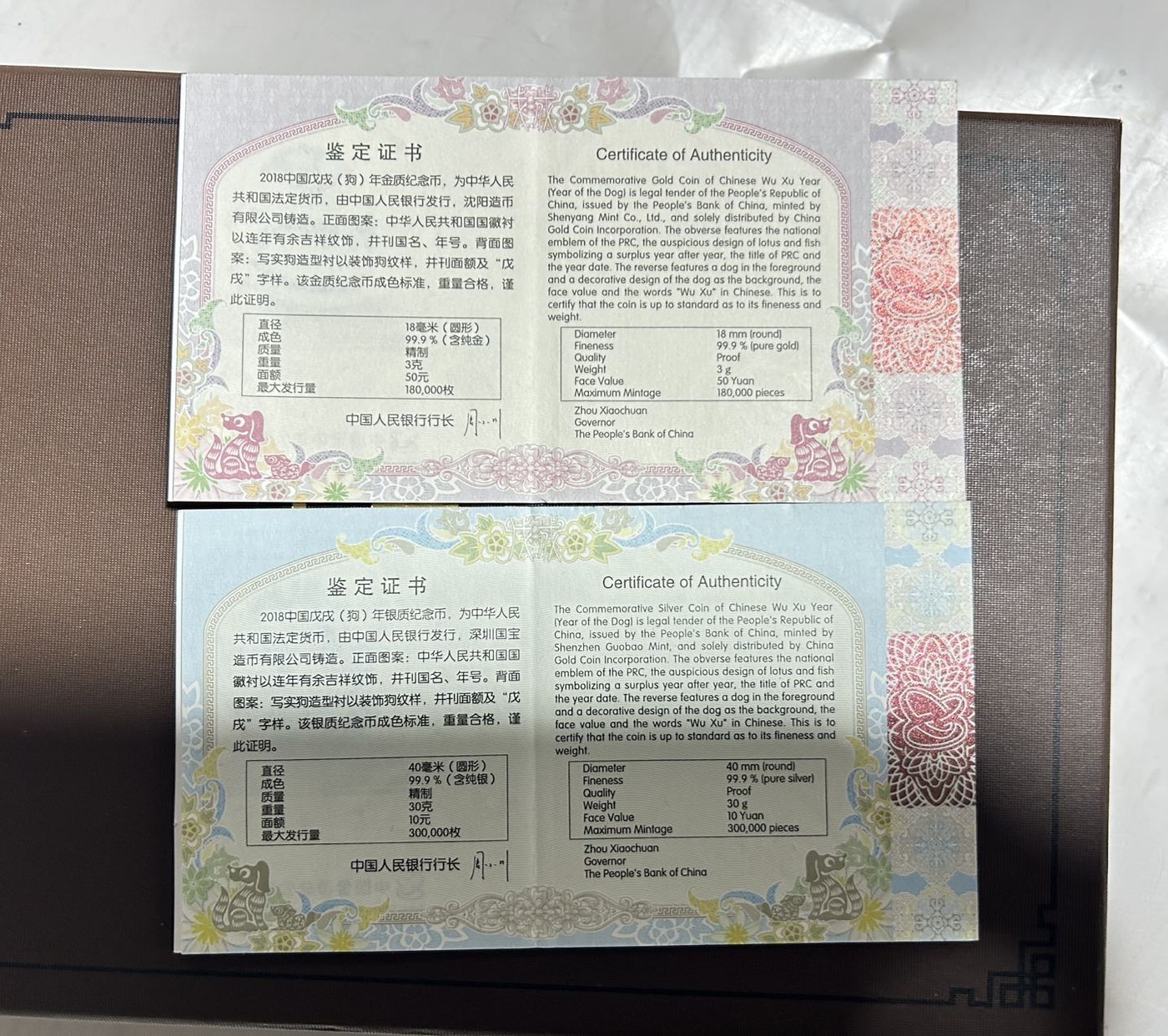 18年封装本色金银狗、17年本色金银鸡。