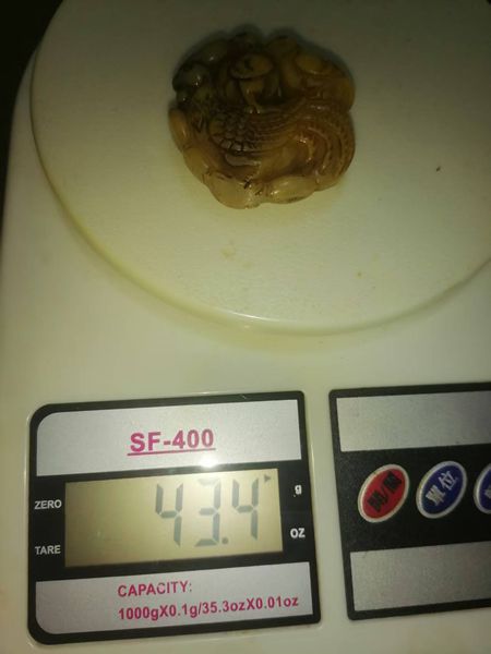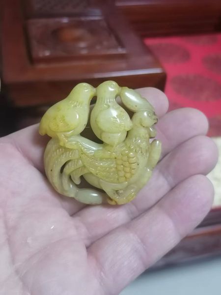 和田老玉一块,年代清代至民国,寓意连升三级,完整售价238元