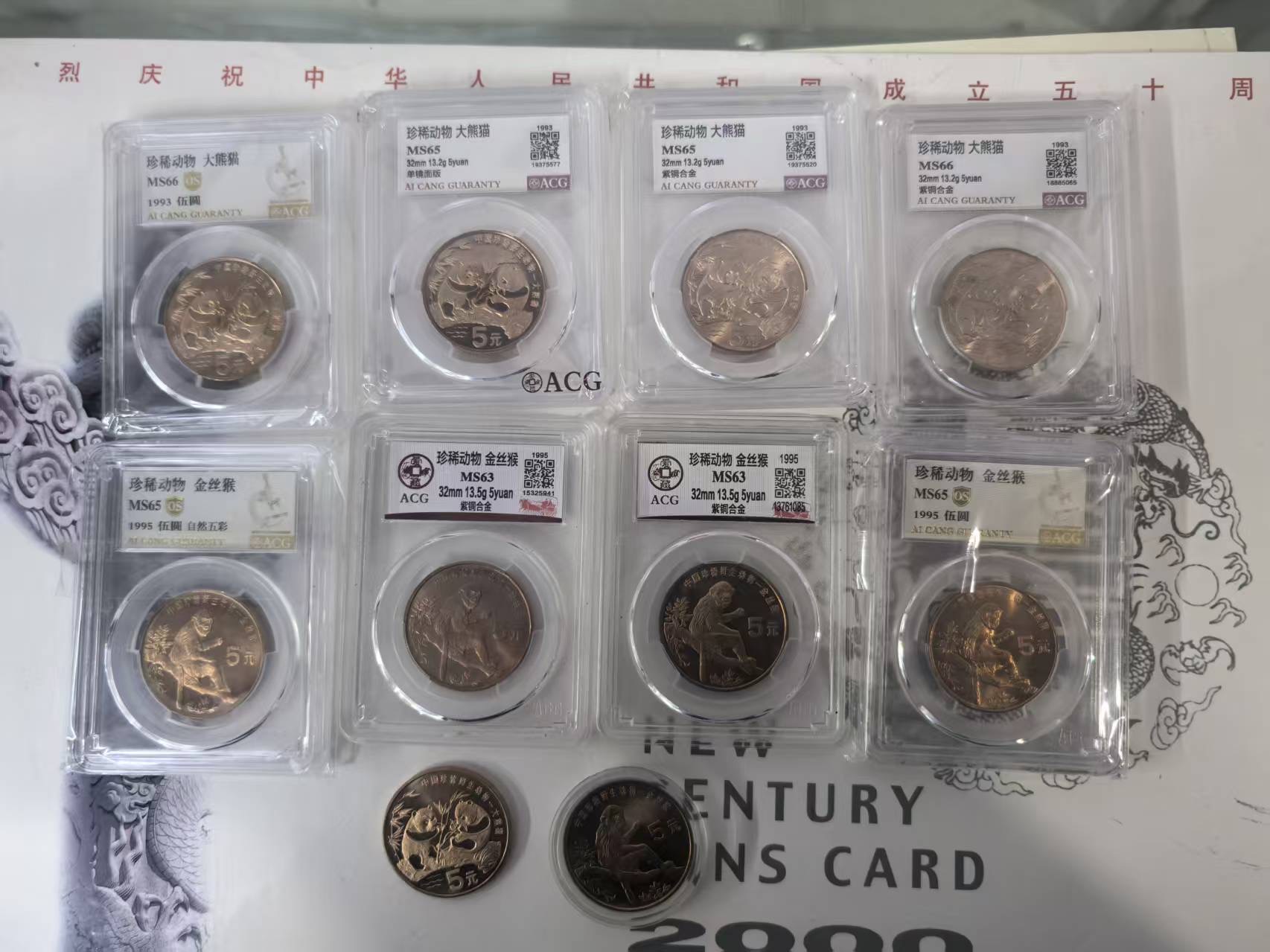 代友出,联系电话,18341127139,珍惜动物爱藏评级四个熊猫四个金丝猴加一个熊猫和金丝猴裸币,一起走,680元包顺丰快递。