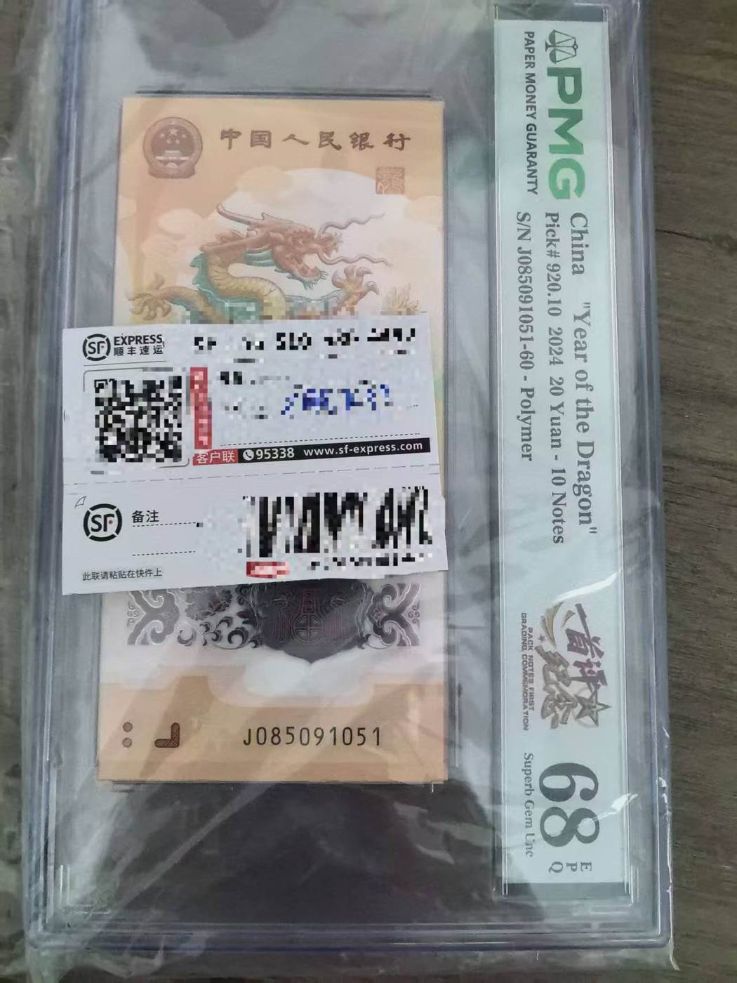 出小龙钞六张的金马号标十pmg68分首评纪念标