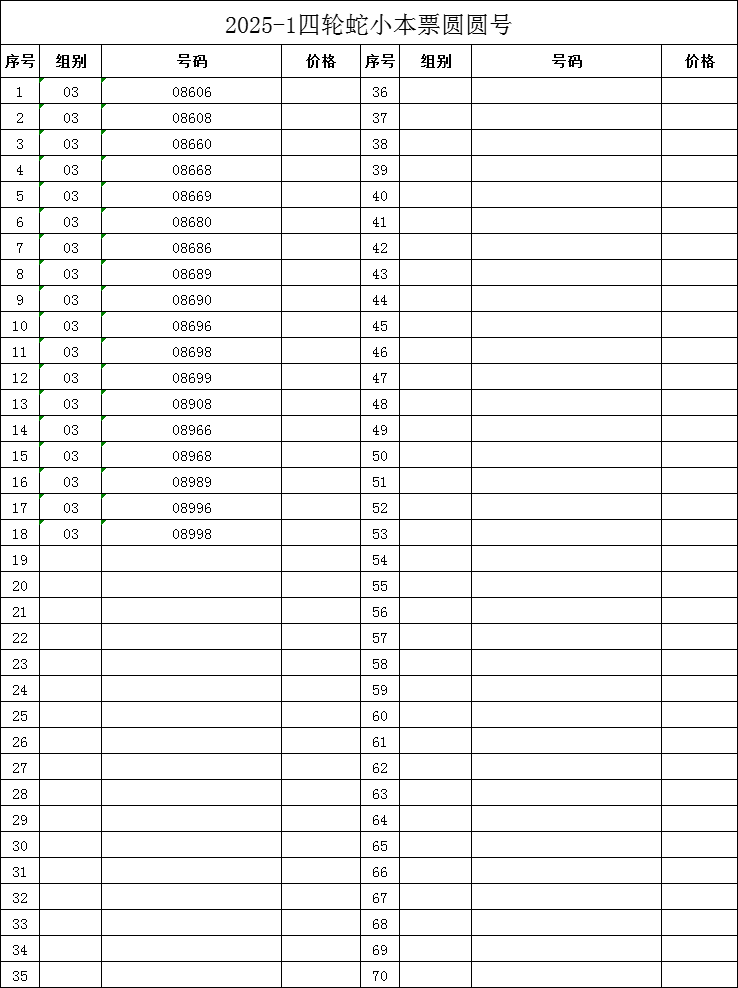 售25年蛇小本票圆圆号03组18本,售价16元/本,一起走,包品包邮,电话联系18907987098(微信同号)!!