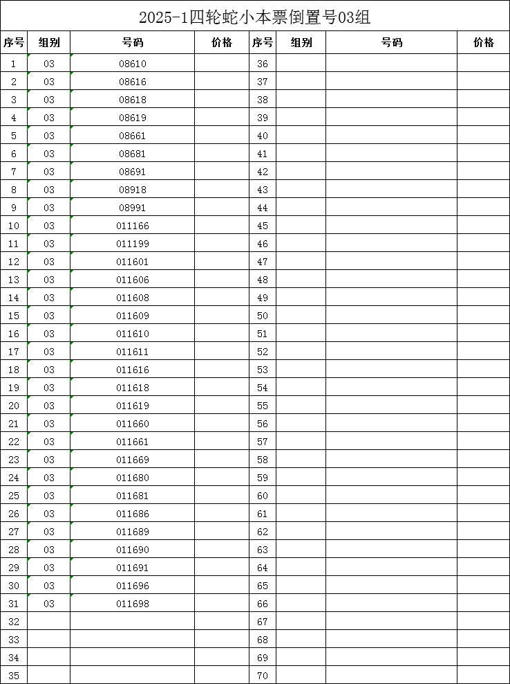 售25年蛇小本票倒置号03组31本,售价11元/本,一起走,包品包邮,电话联系18907987098(微信同号)!!