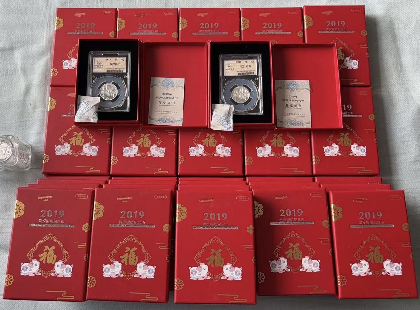 2019年3元福字币贺岁银币8克福字银币证盒齐全,金总封装,150一个x30=4500元包品包顺丰电联确认