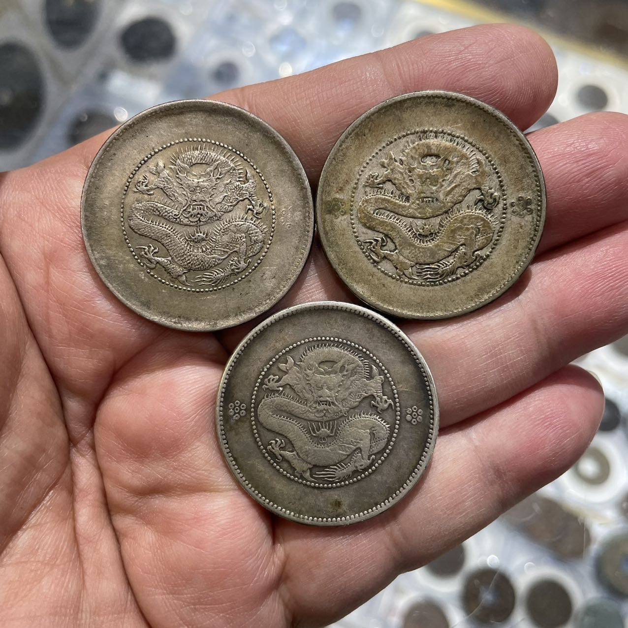 → 店里刚收的老银元一些!
