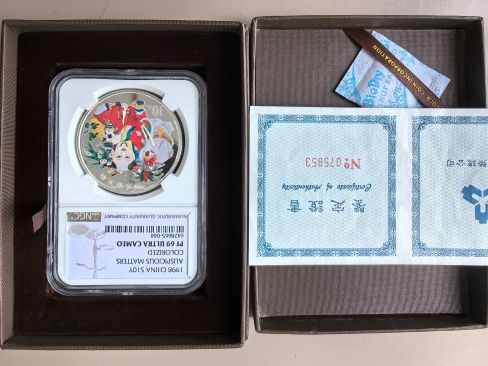 → 出一枚NGC69分1998年万象更新一盎司彩银币