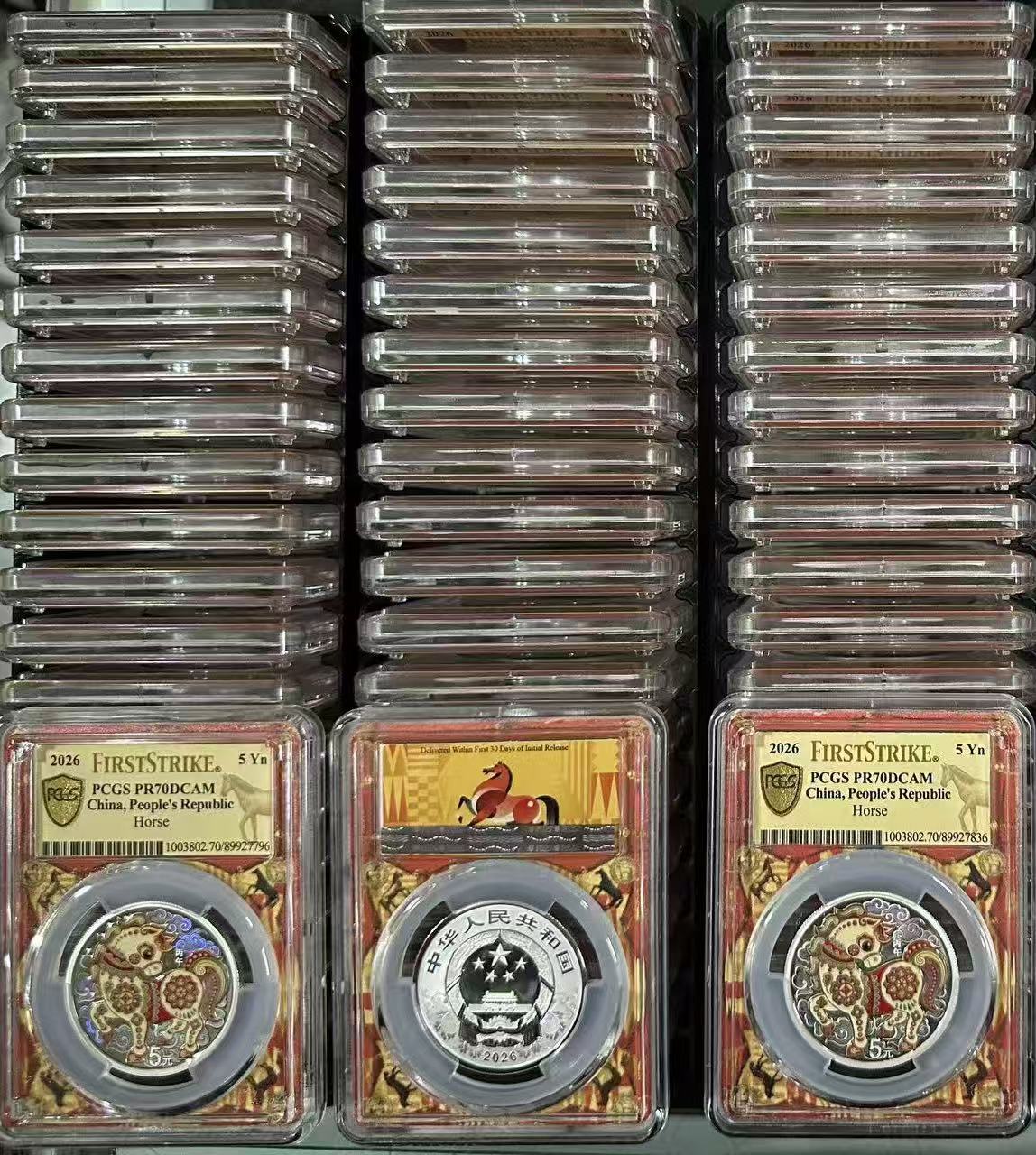 → 580出售彩银马pc初打70分 10枚起售。号码无4串号如图。