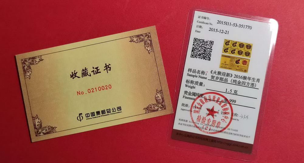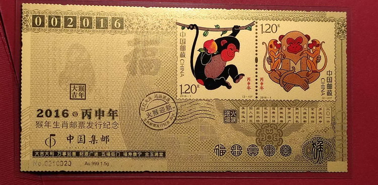 → 特价出刚收的邮政1.5g猴年金钞!!!