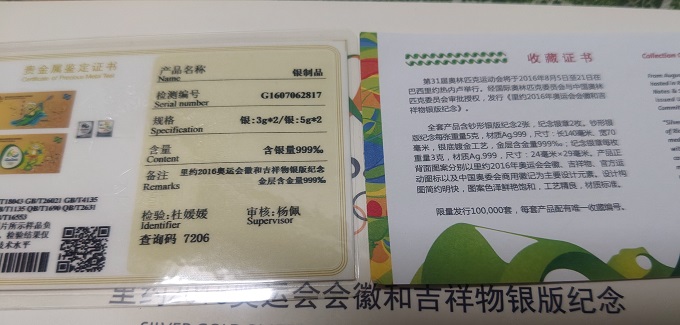 银26克15一克(奥运银钞镀金有证书)
