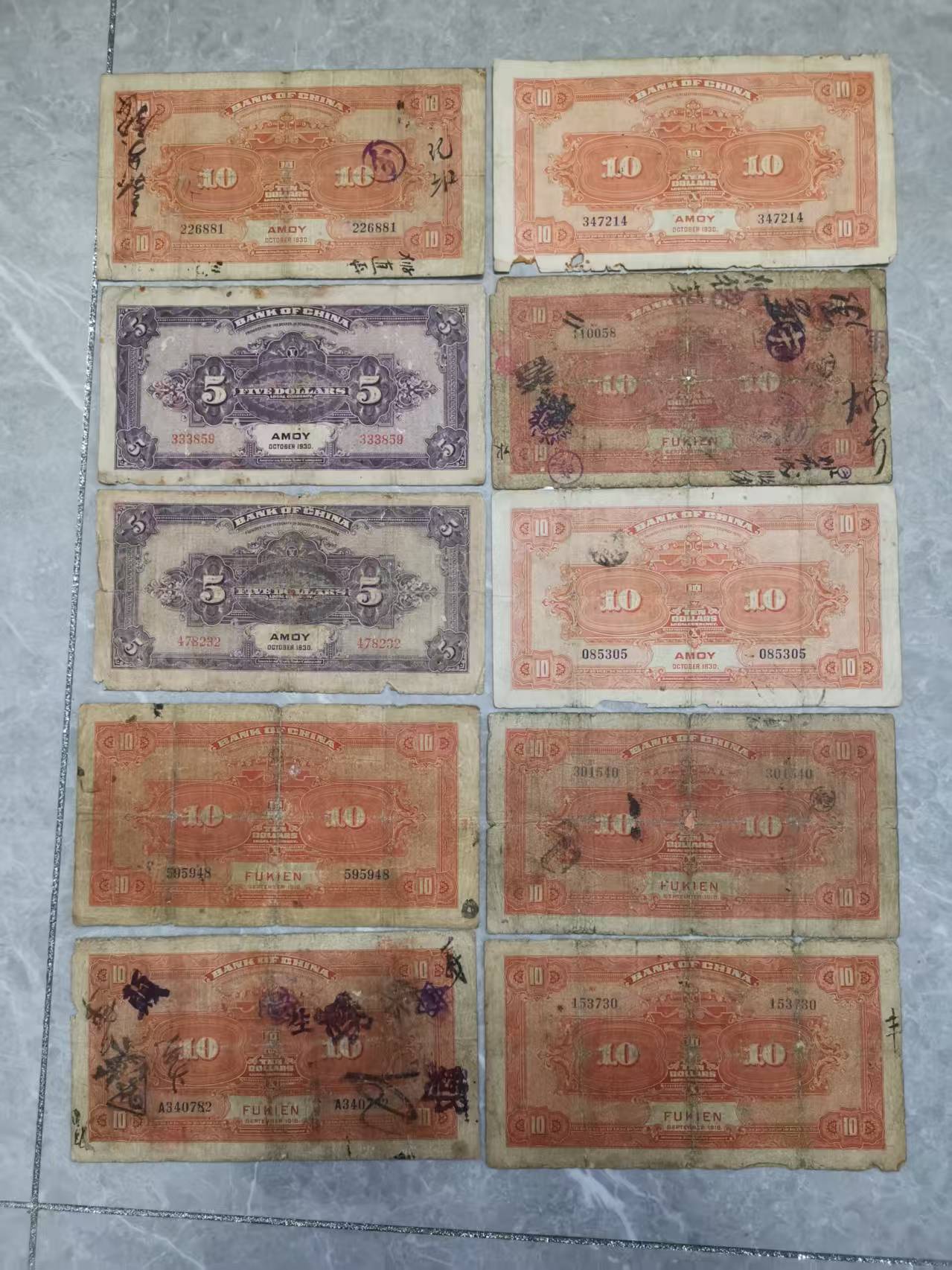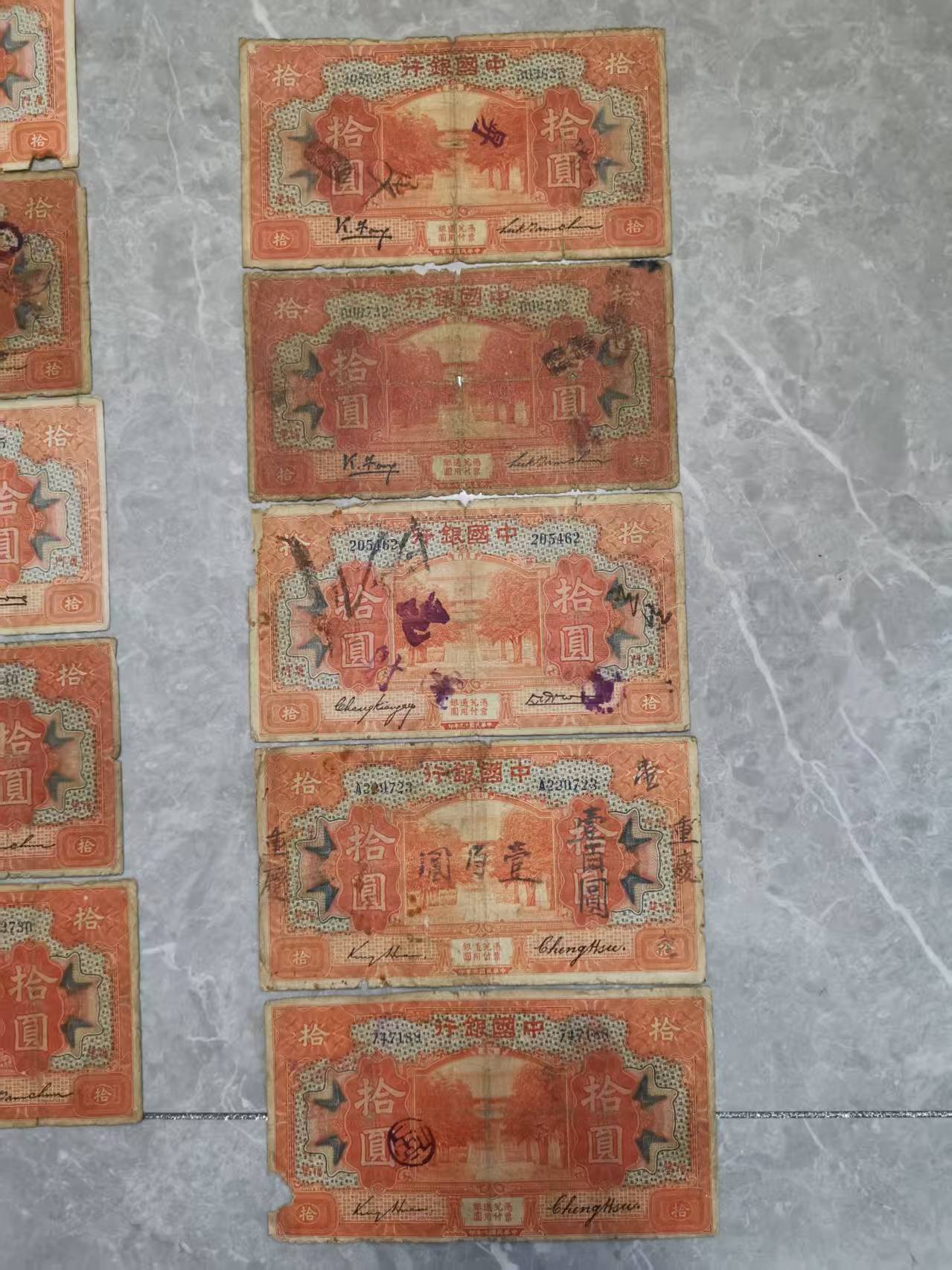→ 出 中国银行拾圆加字票15张