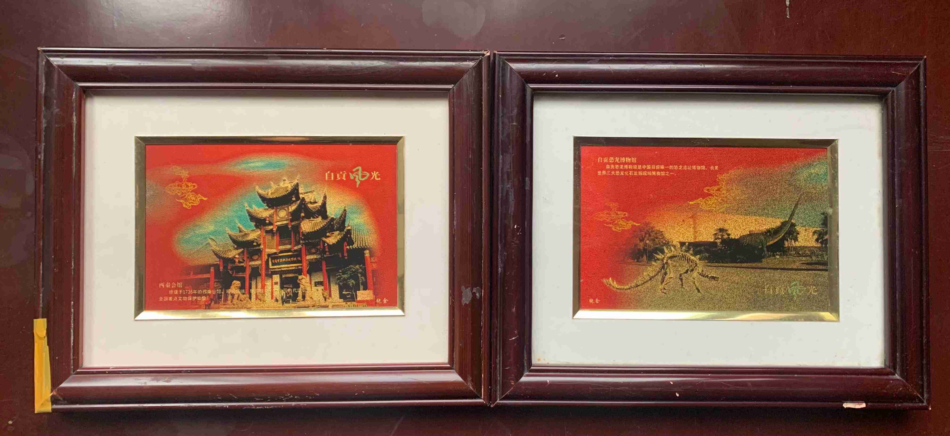 金箔工艺画两幅(自贡恐龙博物馆、西秦会馆)