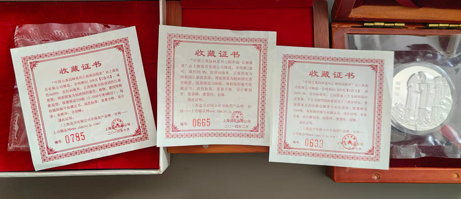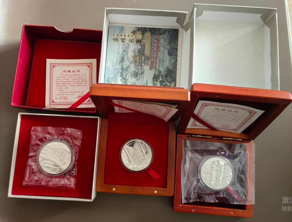 品相好,做工精美,拙政园,圆明园,长廊一共三块, 纯银999,2盎司,配件盒子证书齐全. 62.2*3*16.6=3097包邮到家