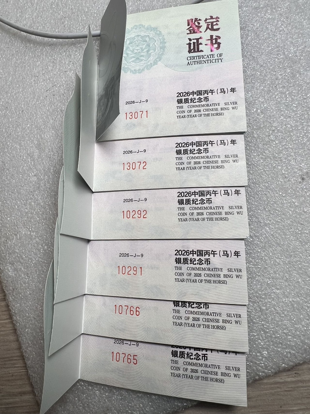 号码:10291,10292(无3457),价格1630一枚