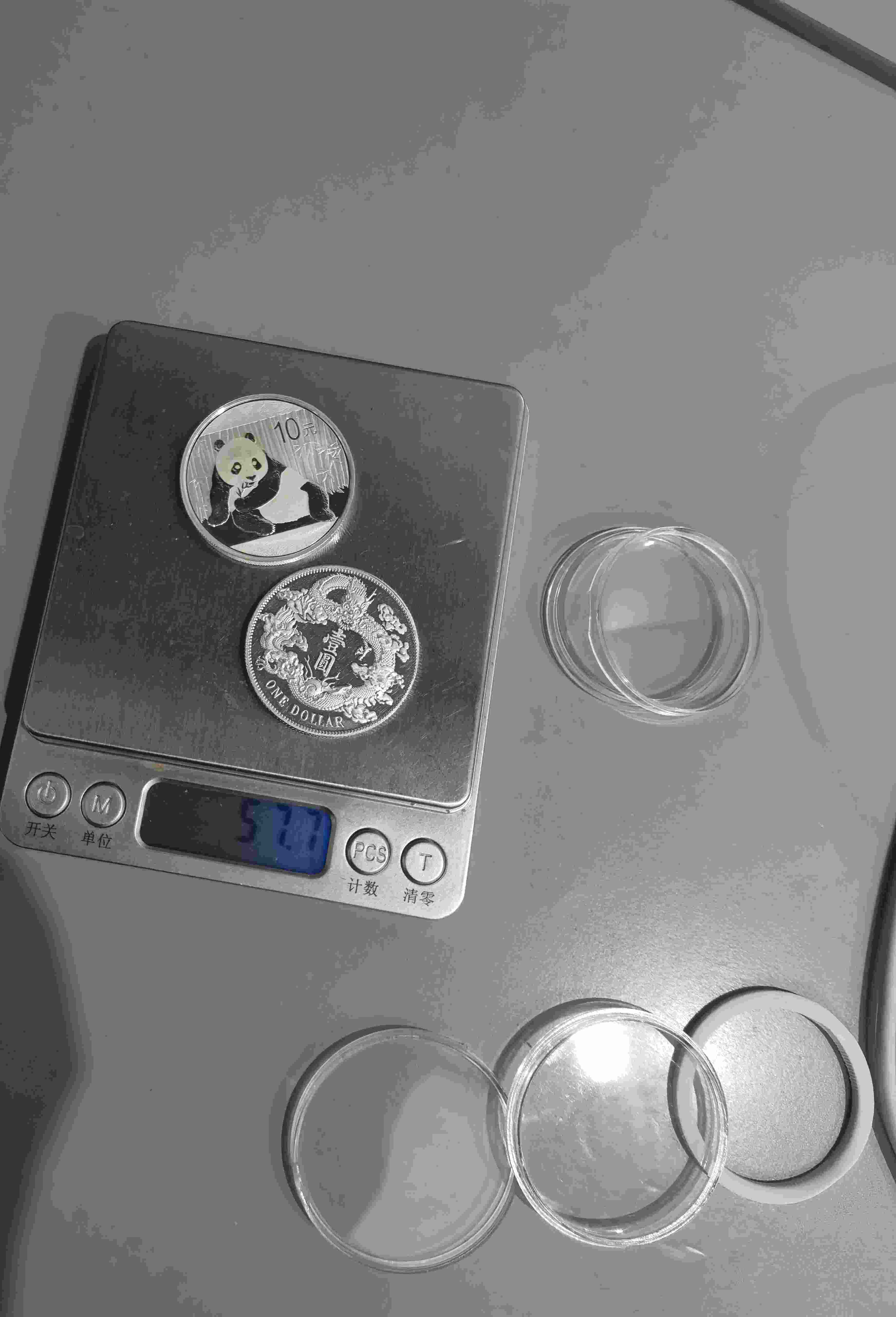 借宝地出15年猫一枚,纯银工艺品大清一枚,一起57.7克,卖个银价16.3每克,合计940元,包顺丰或京东快递
