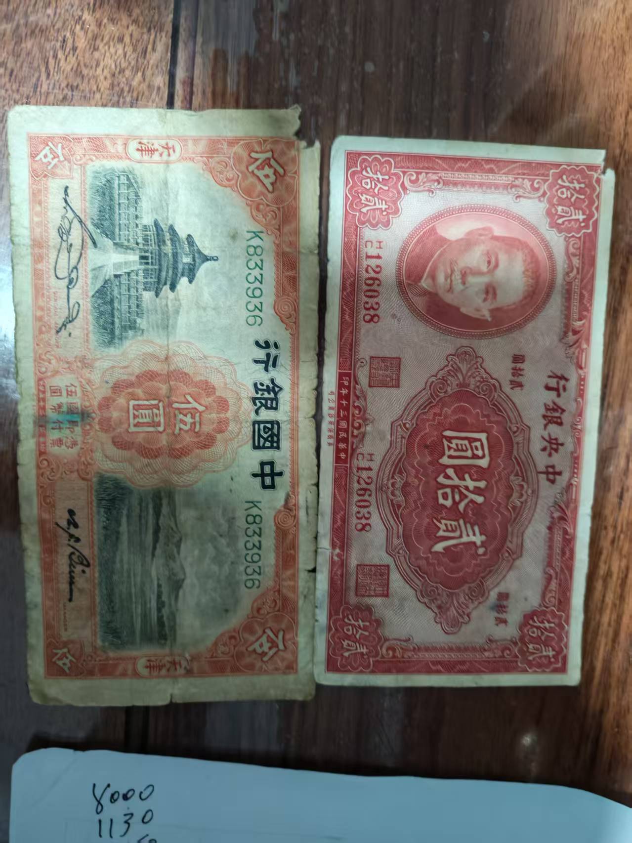 上海红两千,中国银行5元中央银行20元三张一起售价168包邮。