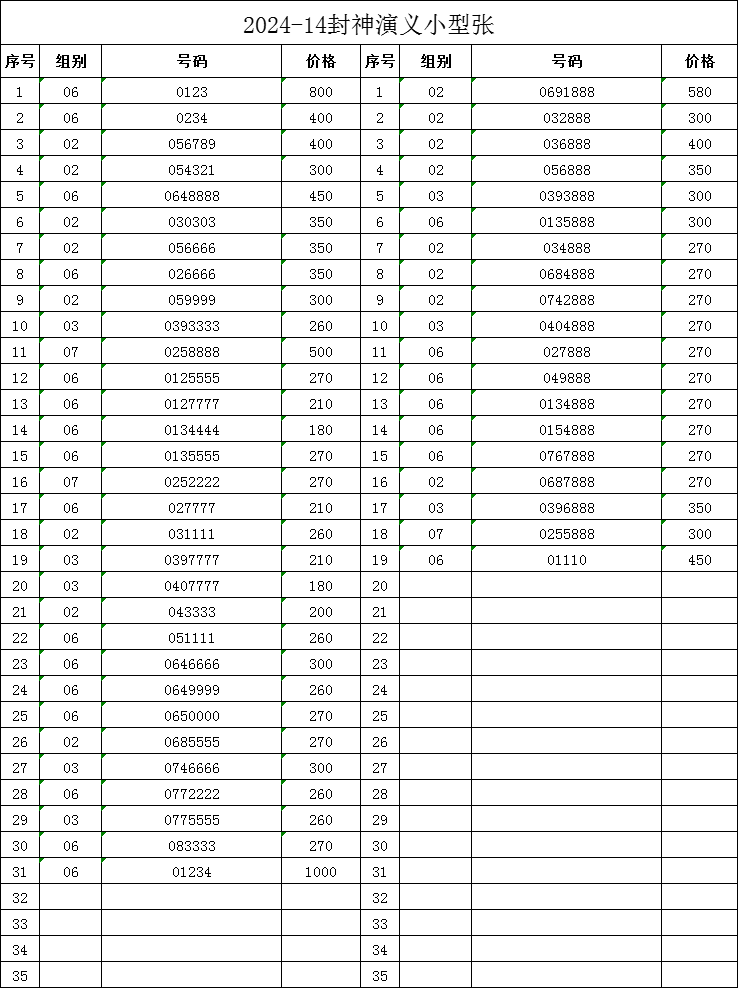 售2024-14封神演义小型张狮子号、888,豹子号,尾88,短号等。以下1枚起售,满1000元包品发顺丰,电话联系18907987098(微信同号)!!