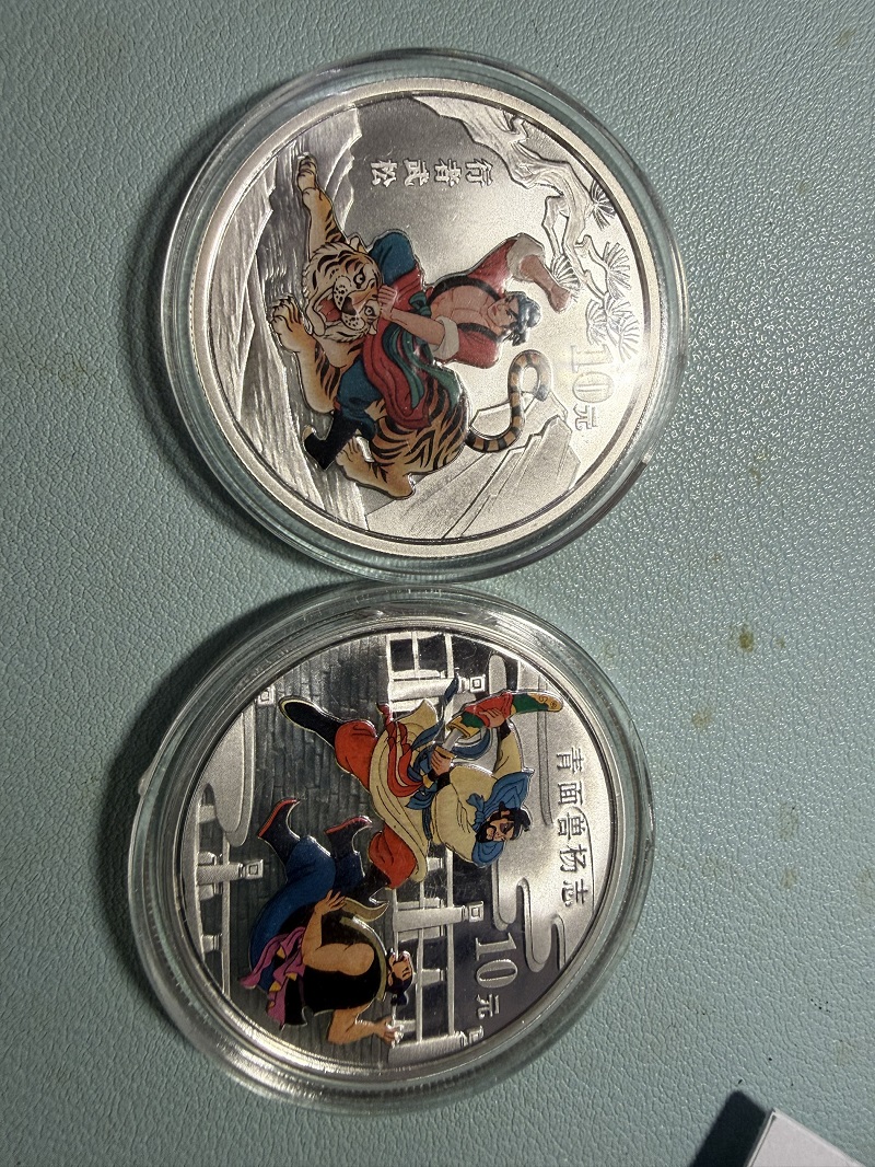550/枚,出售一盎司银币,水浒武松打虎和杨志卖刀。