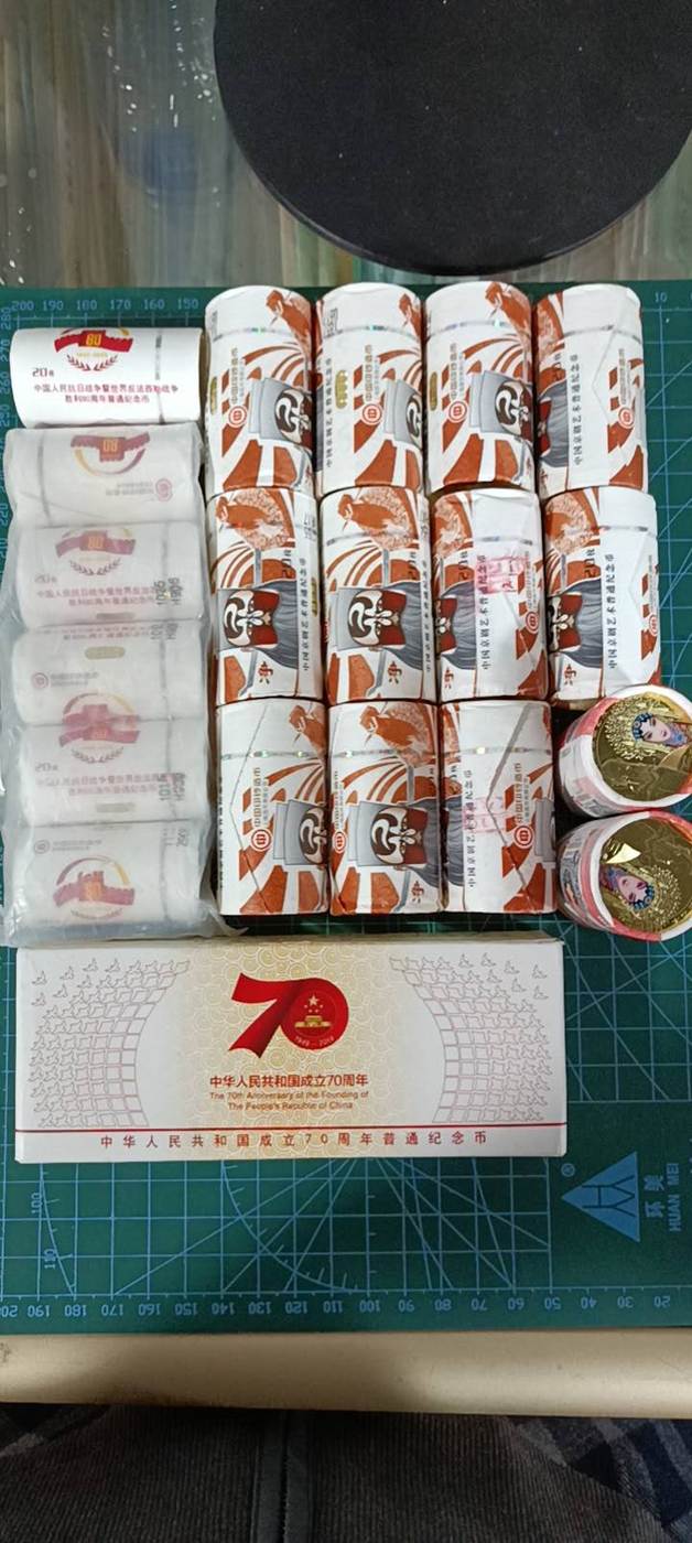 出抗战80周年11.5一枚,京剧三净5.8卷,旦2卷6.2一枚,建国70周年1盒11一枚