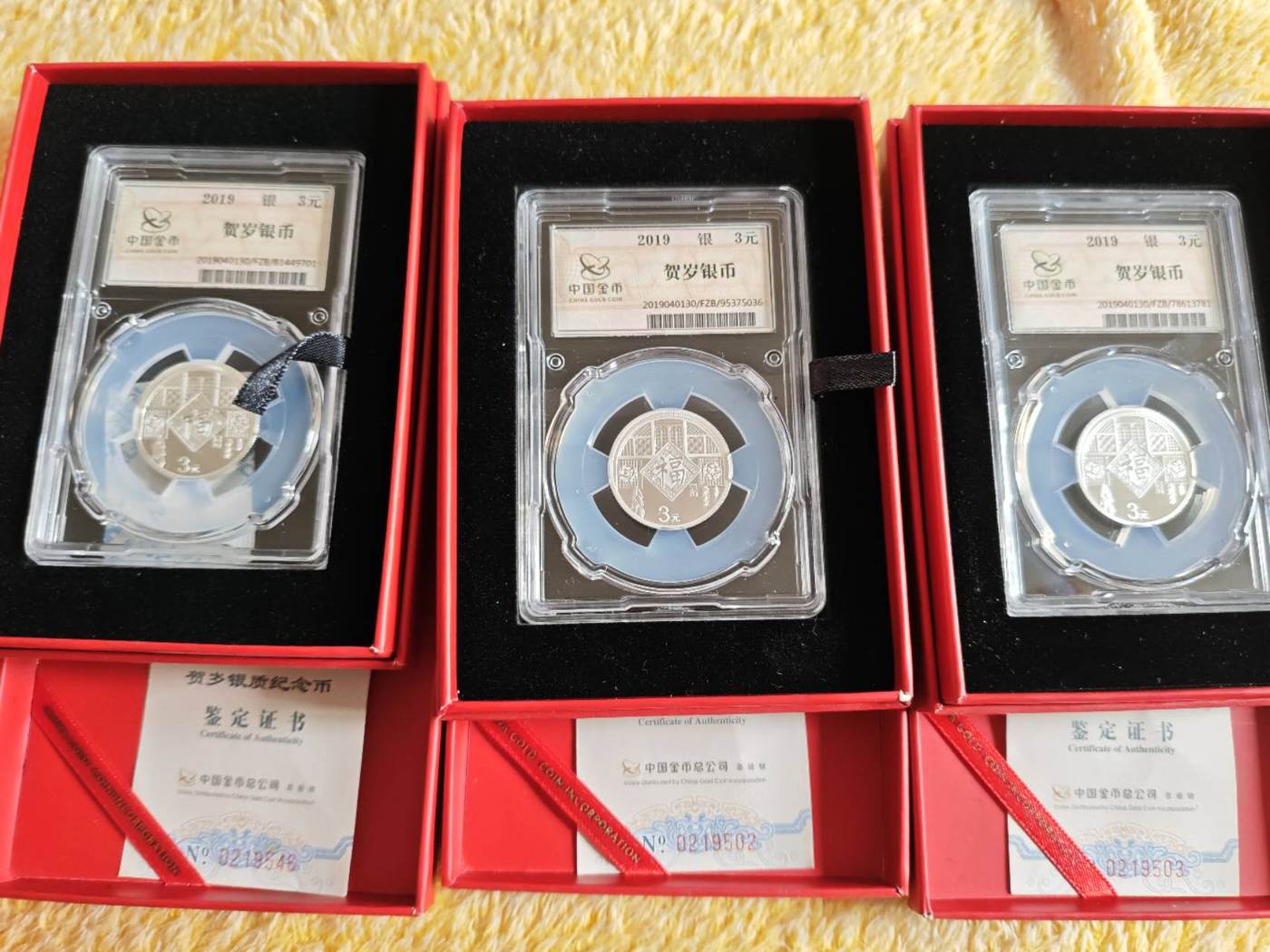 出19-21年贺岁银币原盒和封装版