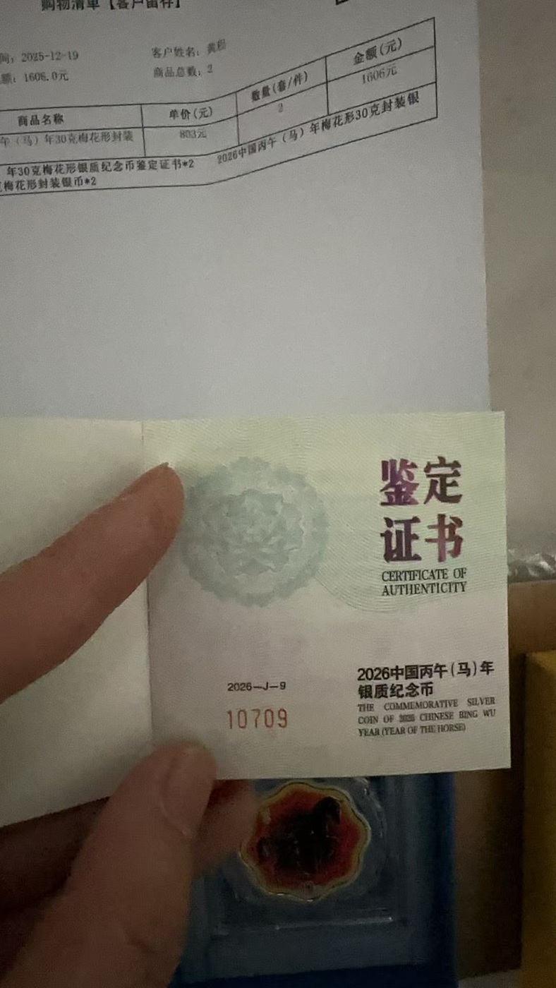 梅花封装马证书号码10709、10710