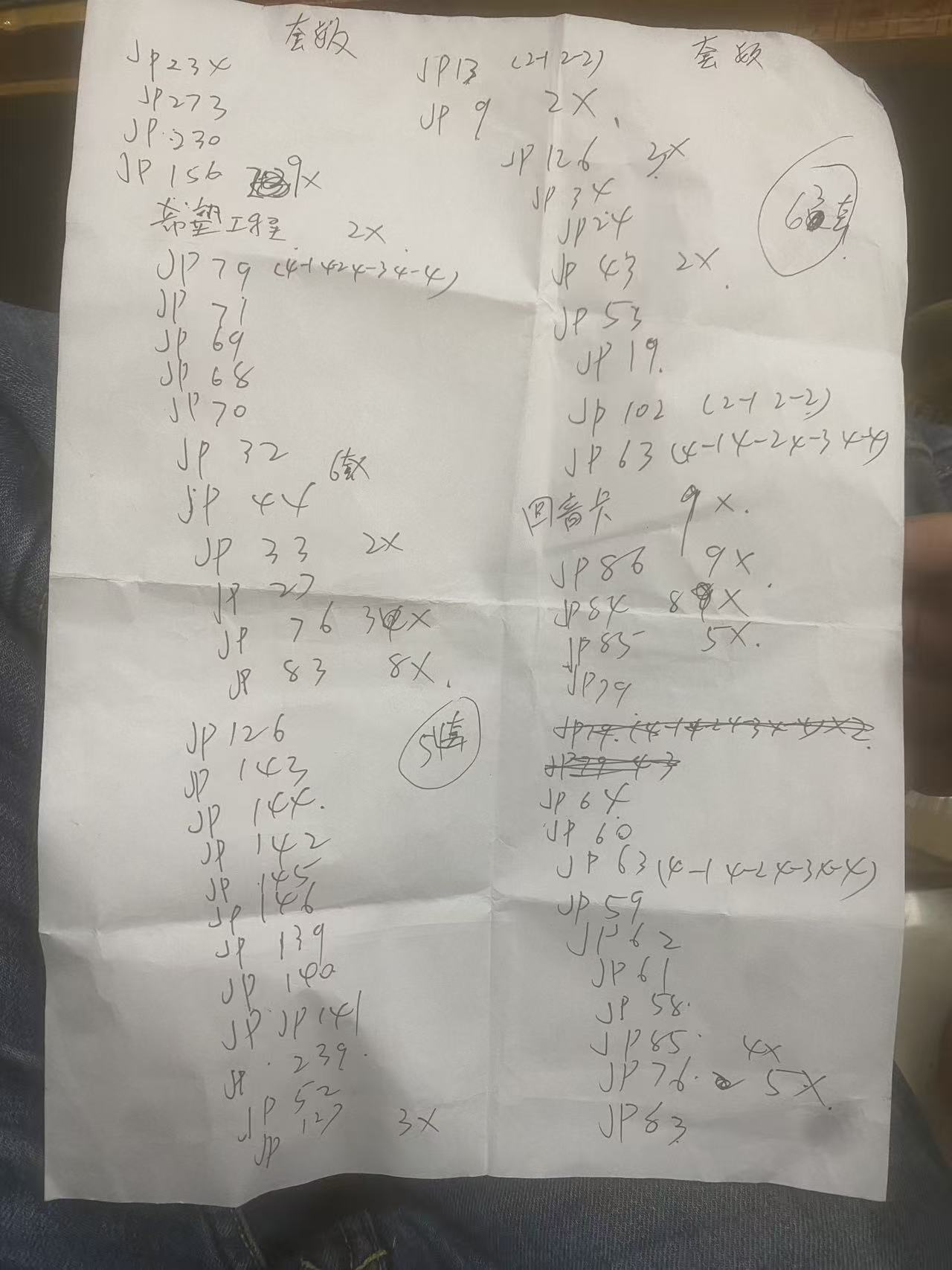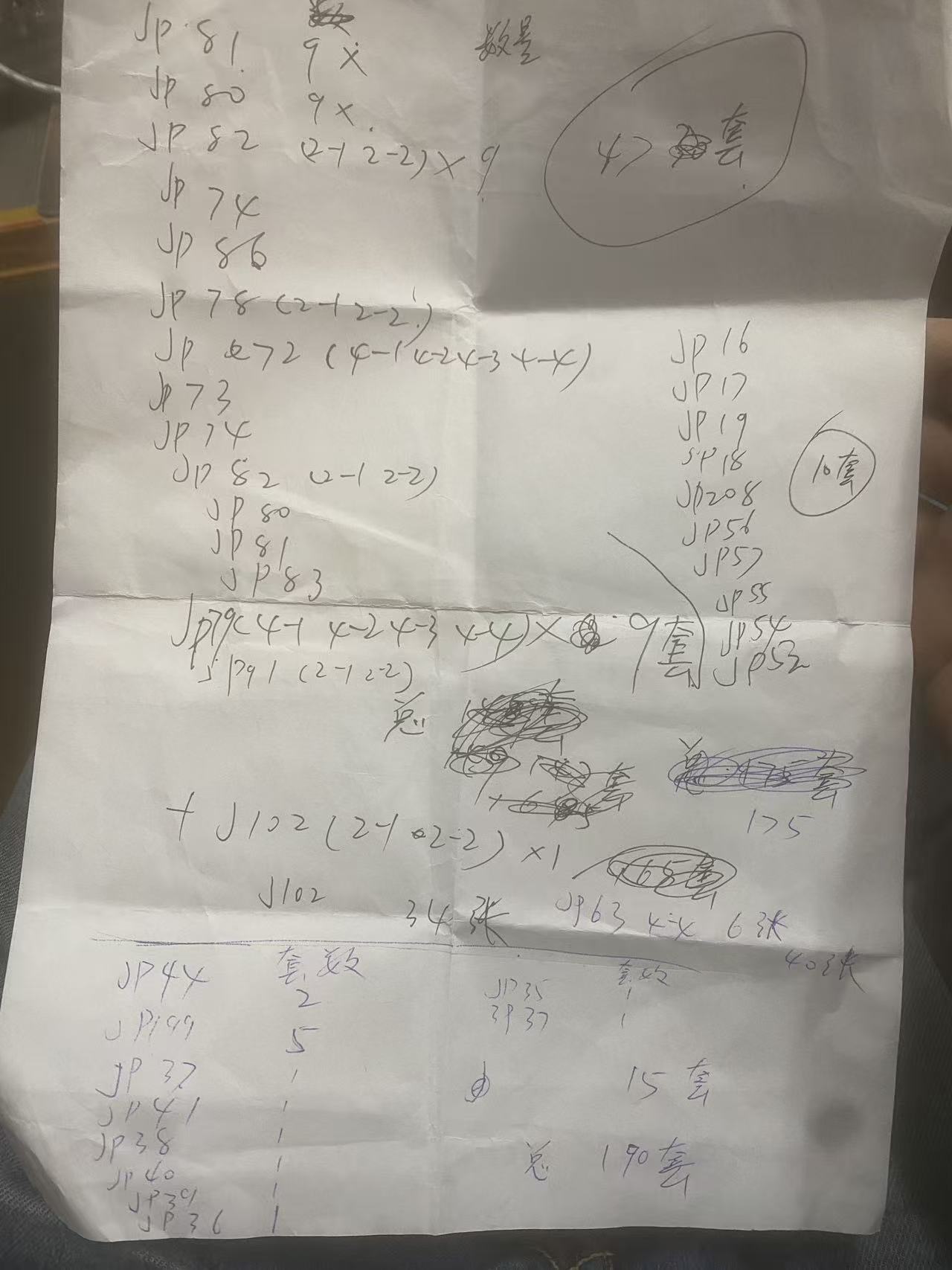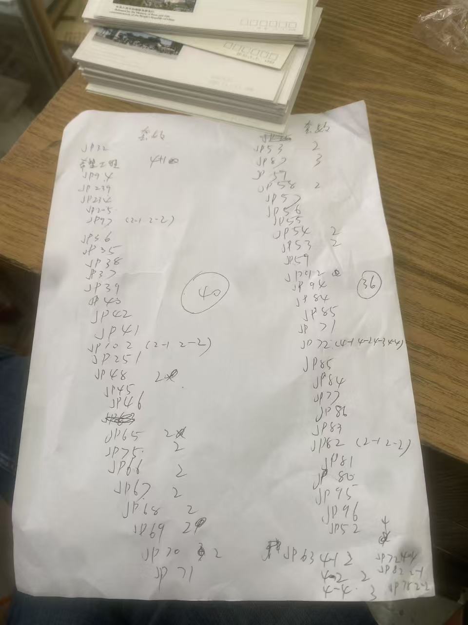 品相好成套的   266 套 种类套数见纸张 纸上后面没写的是一套      加 34张jp102 2-1散片 jp634-1 2张 4-2 2张  4-4  9张 jp72 4-4   1张 jp82  2-1   jp78  2-2  散张  一起 180