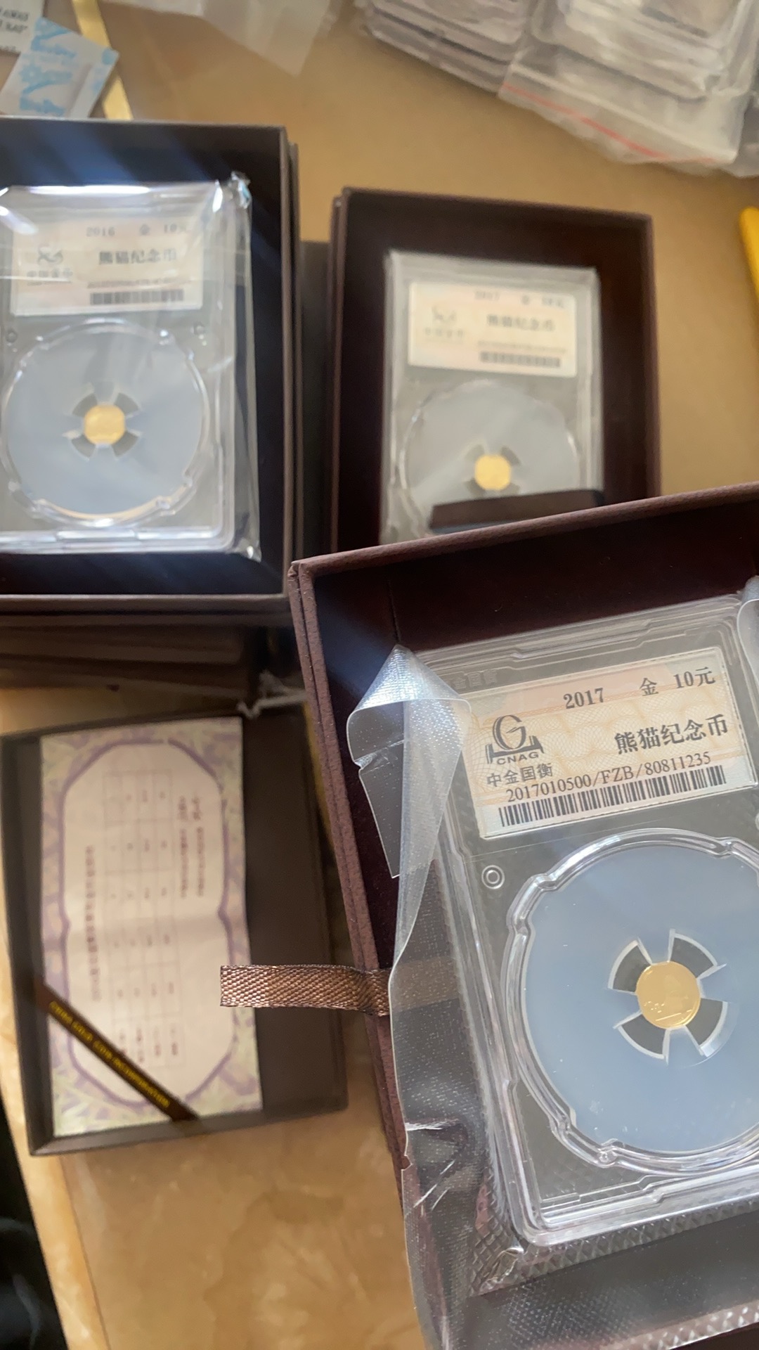 → 出14枚(金总+国衡封装2016和2017年1克金猫)