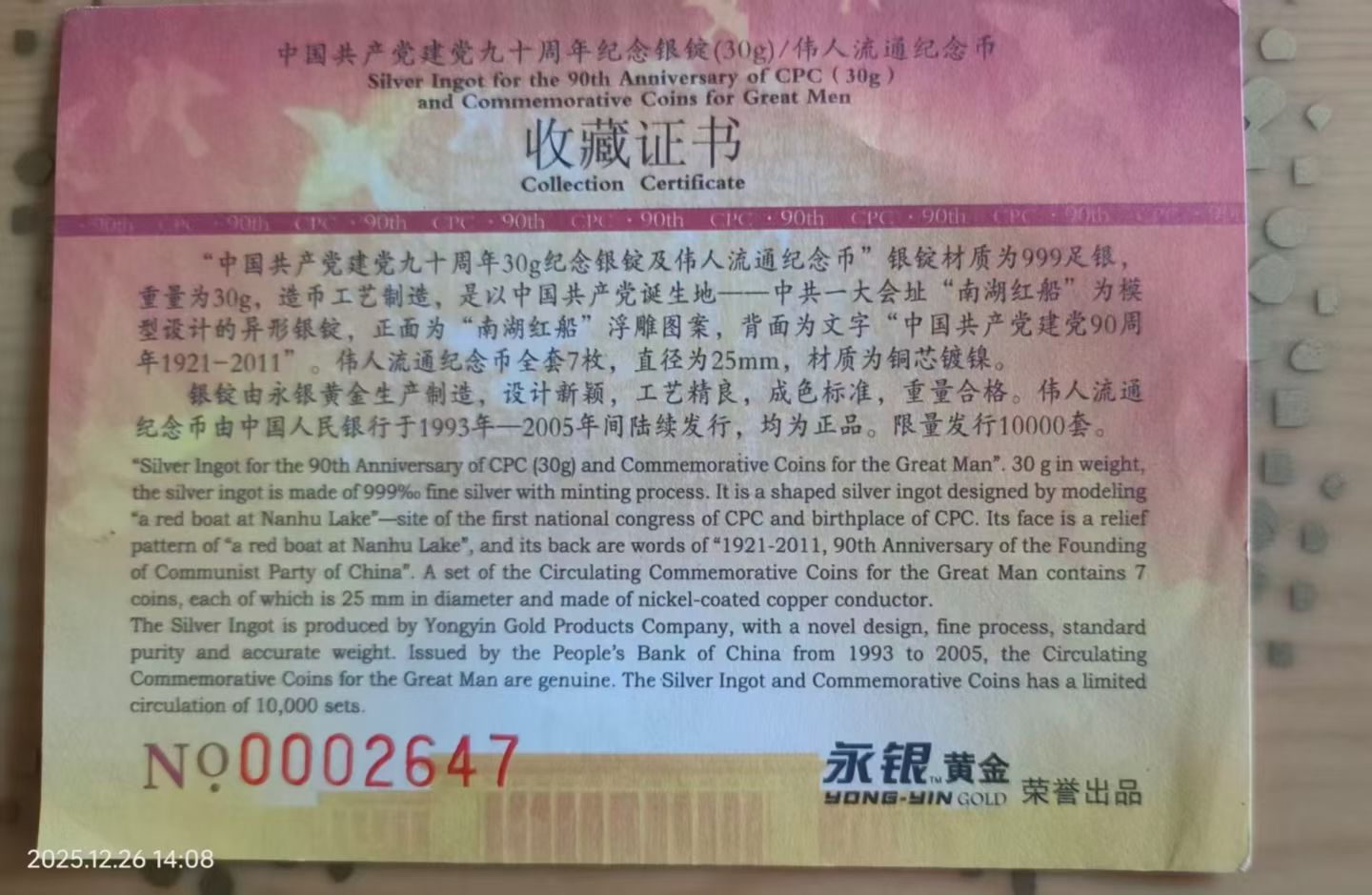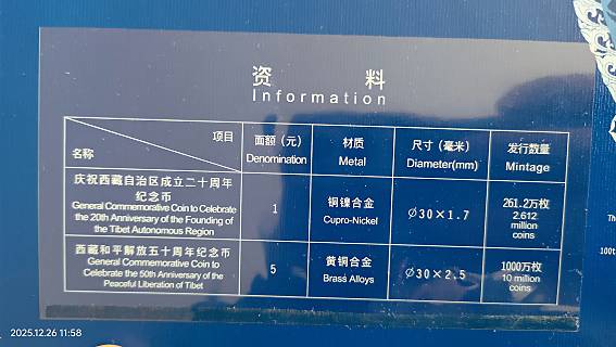 → 出康银阁原装西藏纪念币装帧册及七伟人纪念币