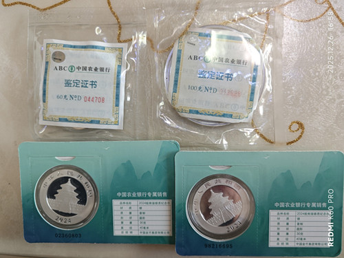24年熊猫智能卡二个,农行100+60二枚币,共计220g银18.8元/g,合计4136元包顺丰,不议价!
