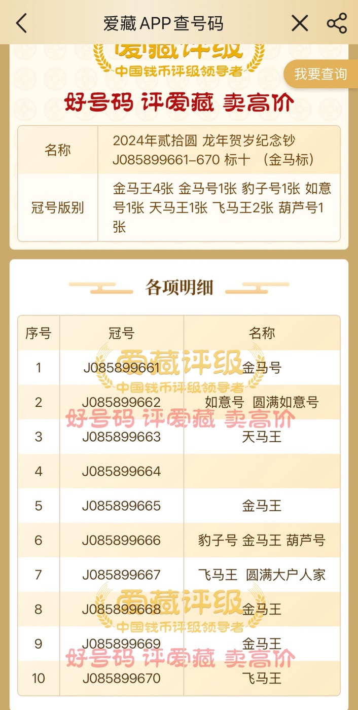 → 出小龙钞大号金马王豹子号标十,爱藏68分,尾666,95至尊