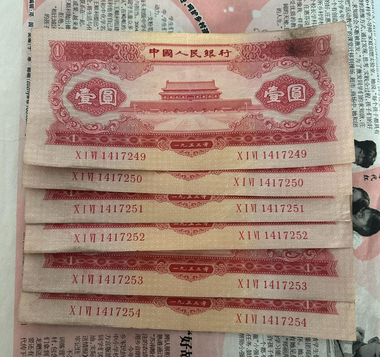 原票红一元6连号