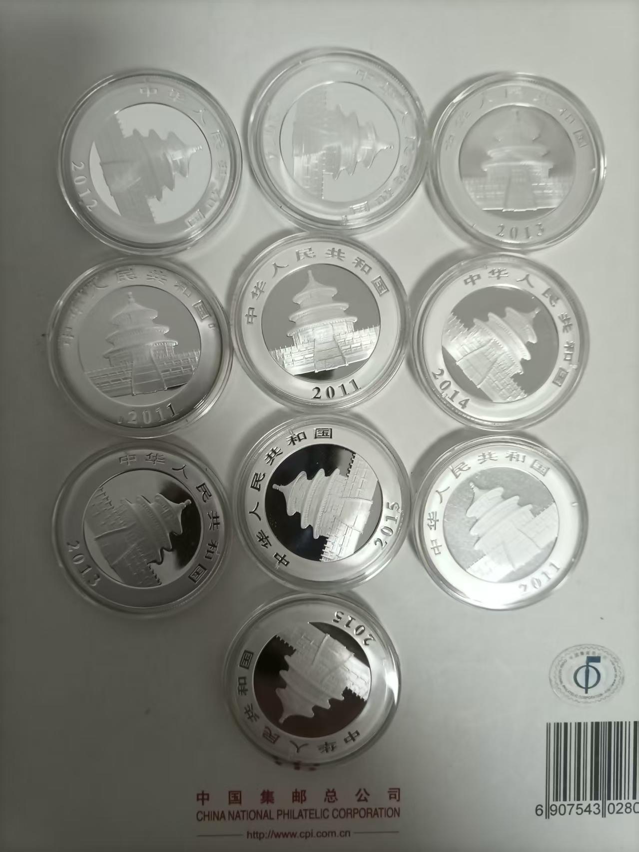 一盎司熊猫银币10枚,11年3枚,12年1枚,13年2枚,14年2枚,15年2枚,个别轻微氧化,575元一枚三包顺丰,可微信看细图。
