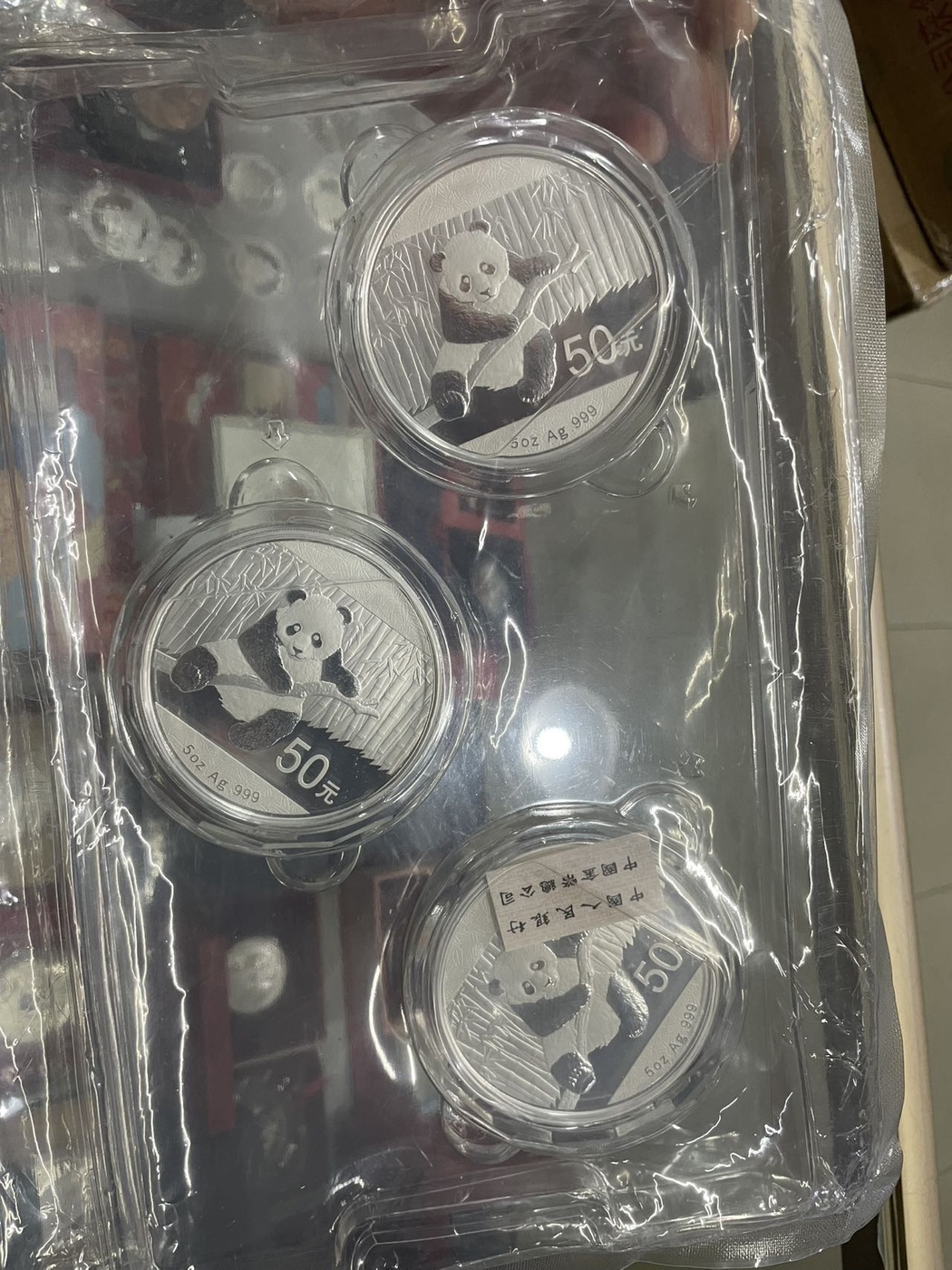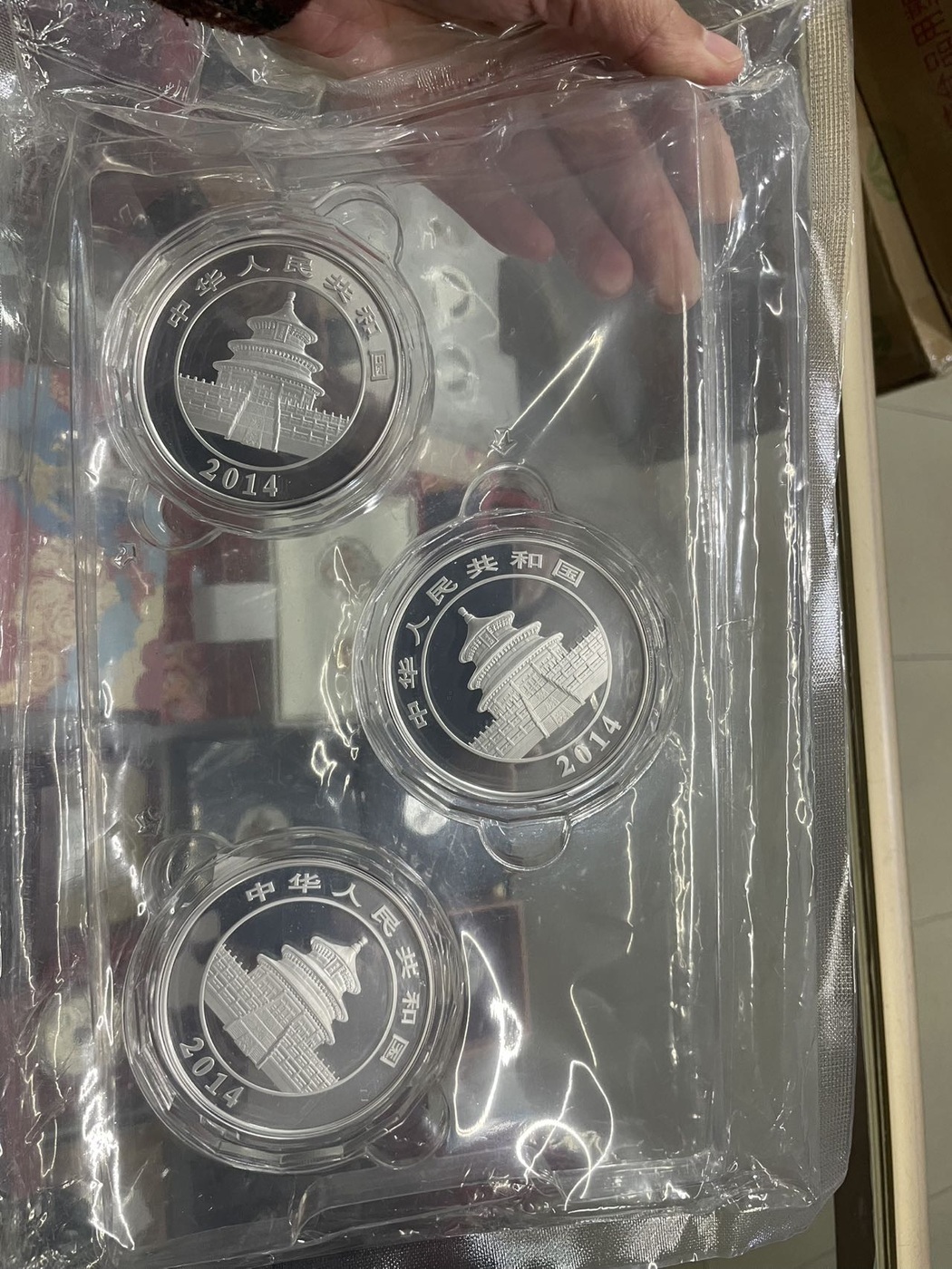 → 2950元出14年5盎司银猫1个原版3枚带证书无盒子