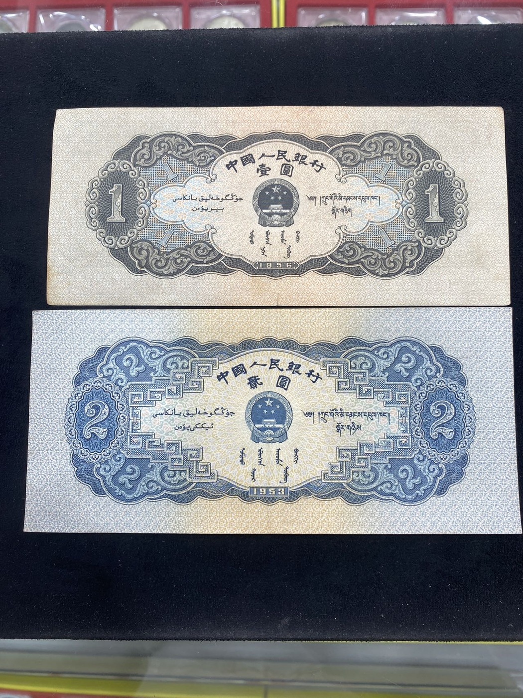 → 出点二版币,黄五,红一元,黑一元,宝塔山二元